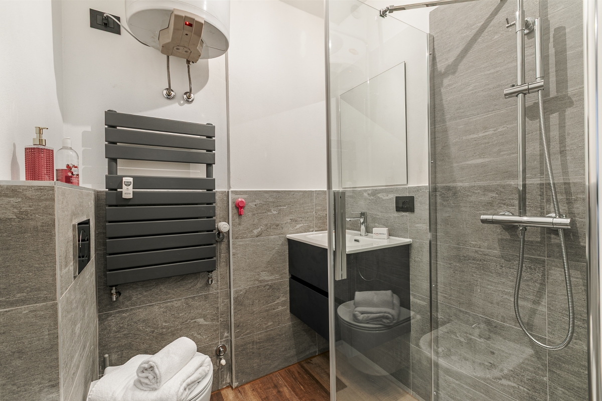 Bathroom 1: The modern bathroom is fitted with a shower, a bidet, a washbasin and a WC