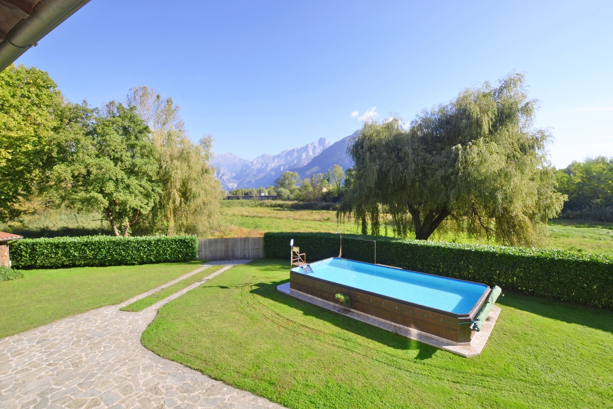 The owner lives alone in the adjoining property and has a separate lawn and garden; they reserve the right to use the pool occasionally.