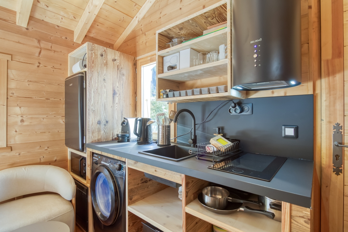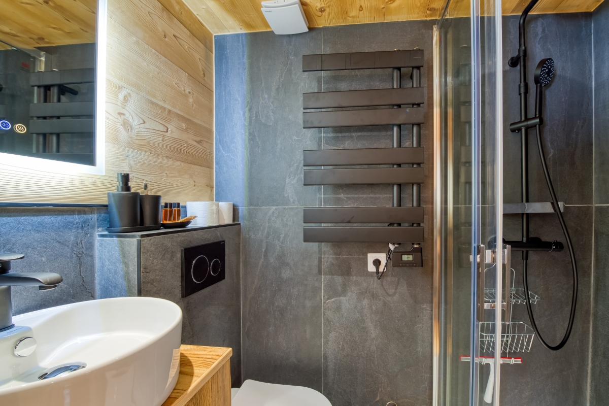 The property also features a separate, independent mazot accommodating up to 2 additional guests, increasing the total capacity to 10 people. Located in the chalet’s private garden, it is equipped like a self-contained studio, with a kitchenette, a bathroom with walk-in shower and WC, and storage space. Ideal for a couple or guests seeking privacy while remaining close to the main chalet.