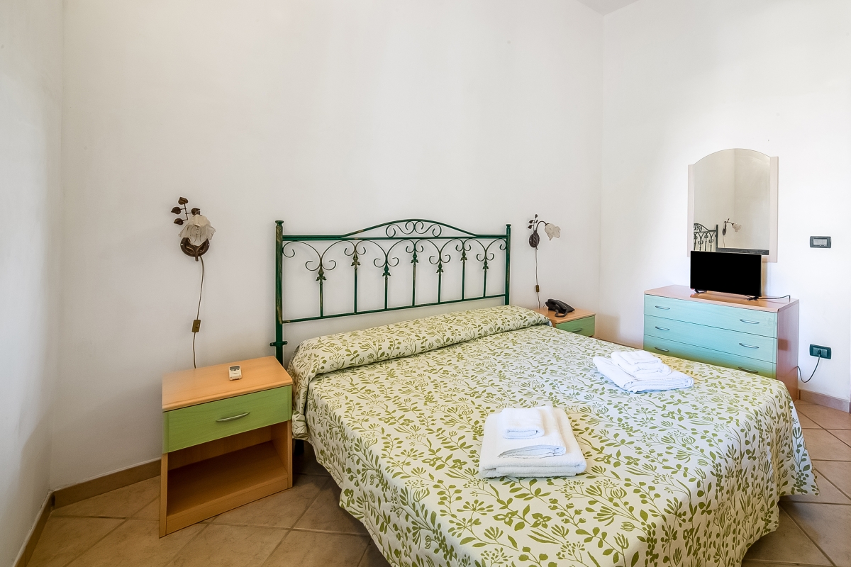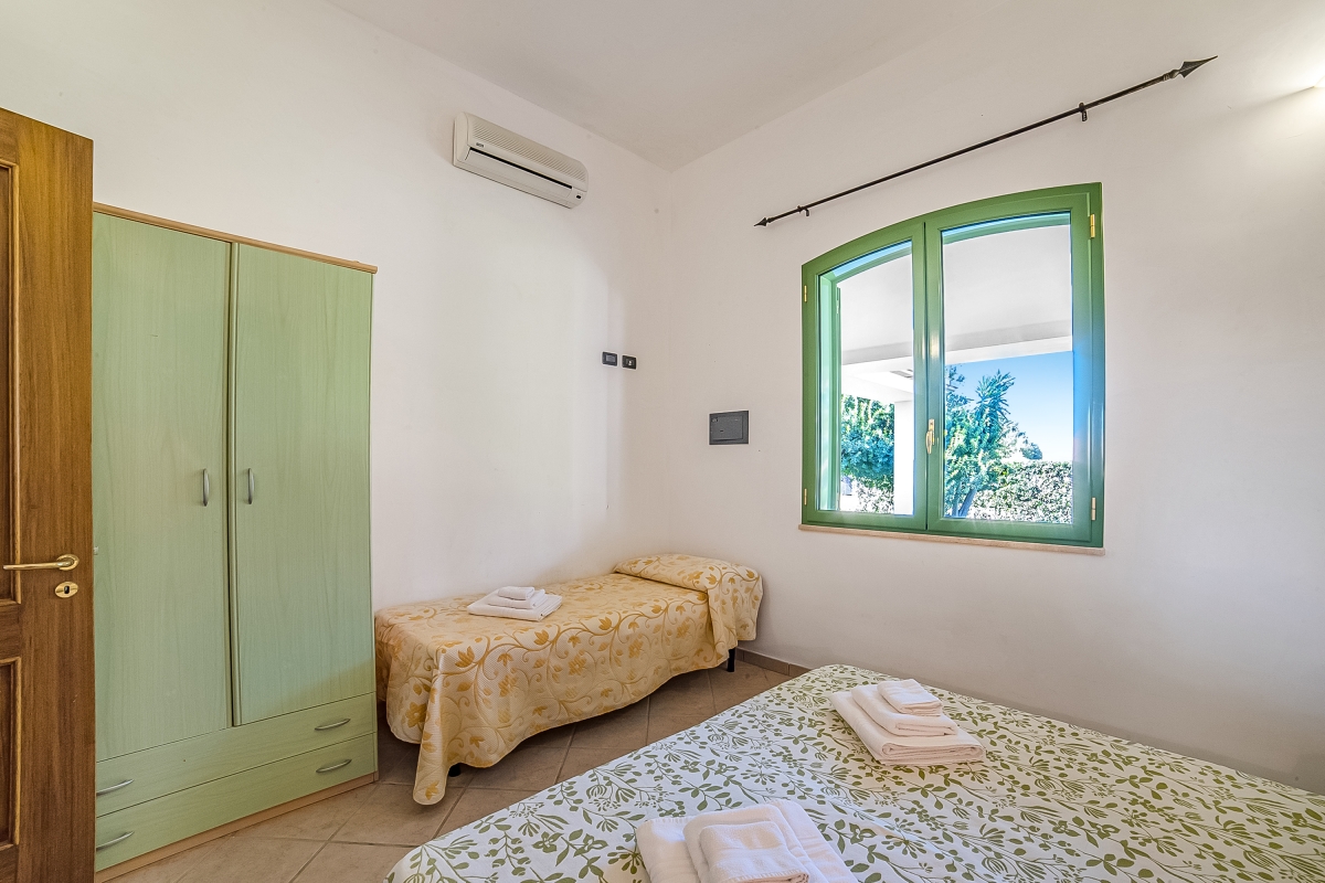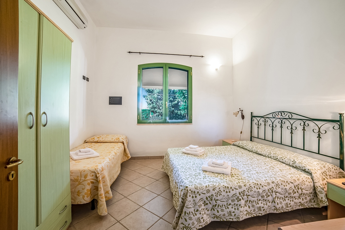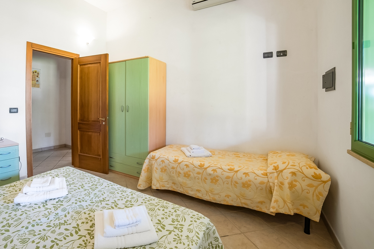 Bedroom 1: The bedroom features a double bed, a single bed, and a wardrobe.