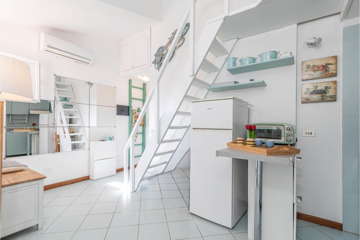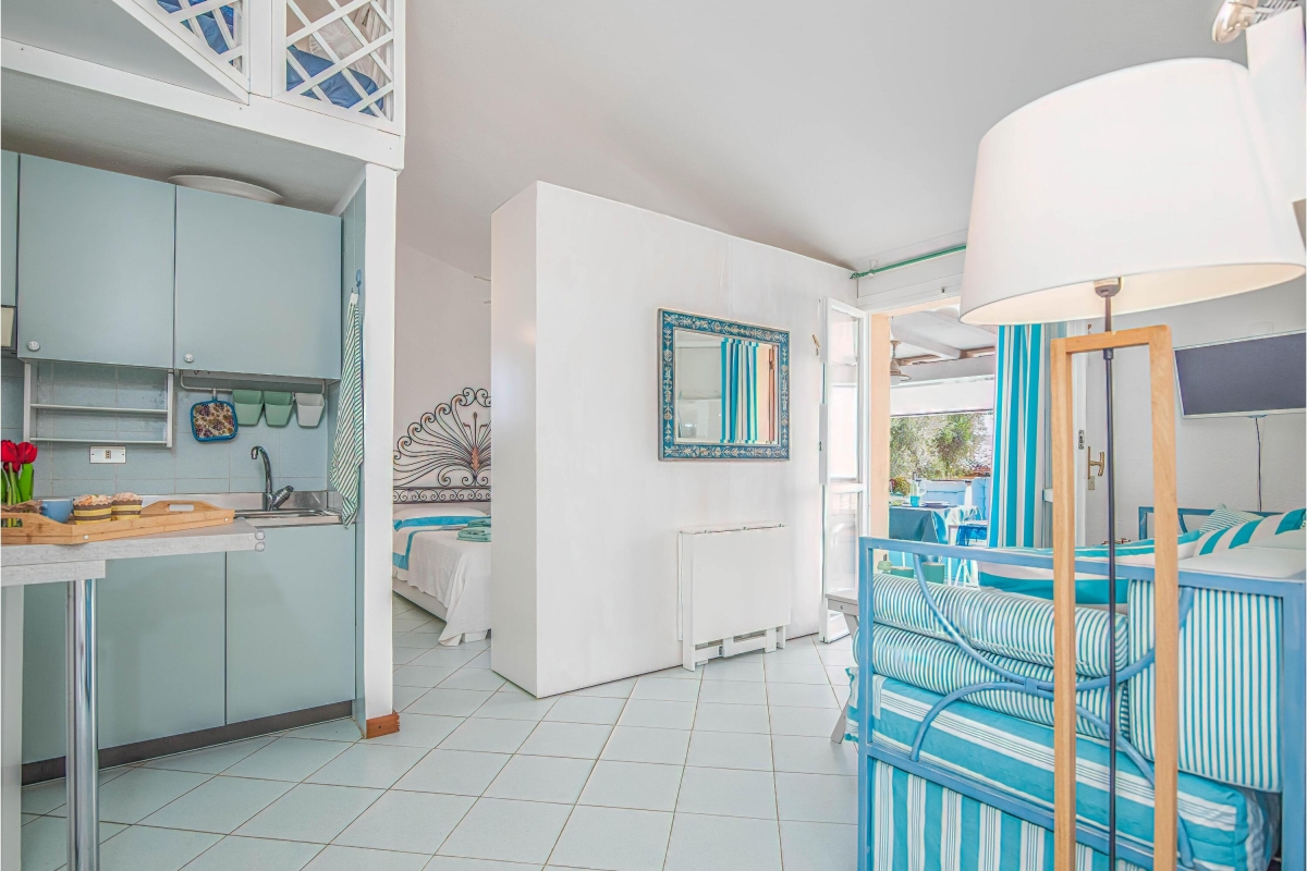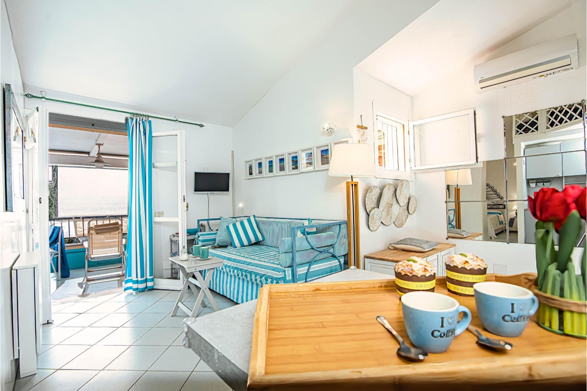 This charming getaway for 3 close to the bay of Marinella is quietly situated on the first floor of a well-maintained building, offering the ideal choice for couples or small families. The property benefits from the use of a shared infinity pool and a children's play area.