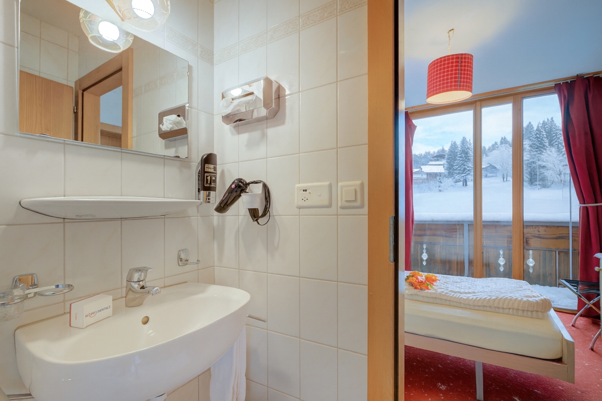 This room features a single bed, a wardrobe, a bathroom and opens onto a balcony. Equipped with free Wi-Fi, the room offers a comfortable space to unwind after a day in the mountains.