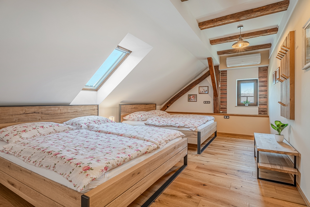 Surrounded by forests and vineyards in north-eastern Slovenia, this airy apartment for 6 is part of a sensitively converted villa. It makes an ideal choice for friends or two families. Close by, there are many activities for all ages at any time of year.