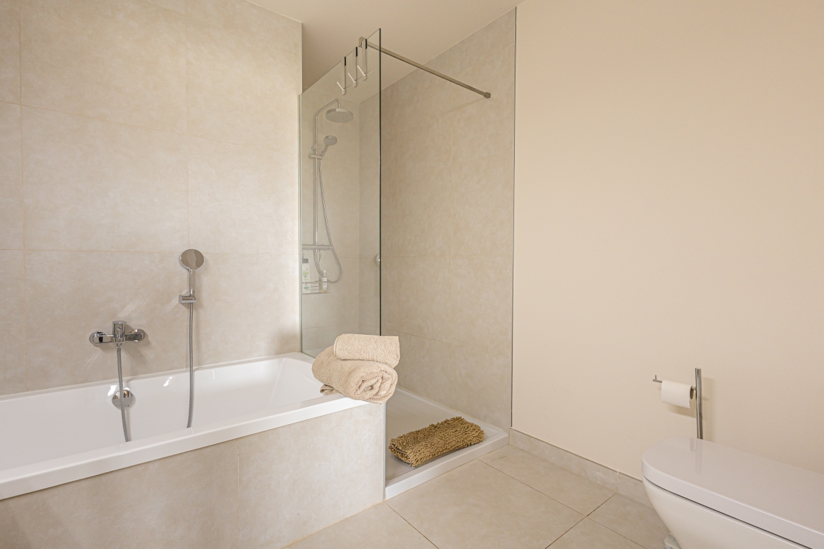 Bathroom 1: This ensuite bathroom has a bathtub, shower, and WC.