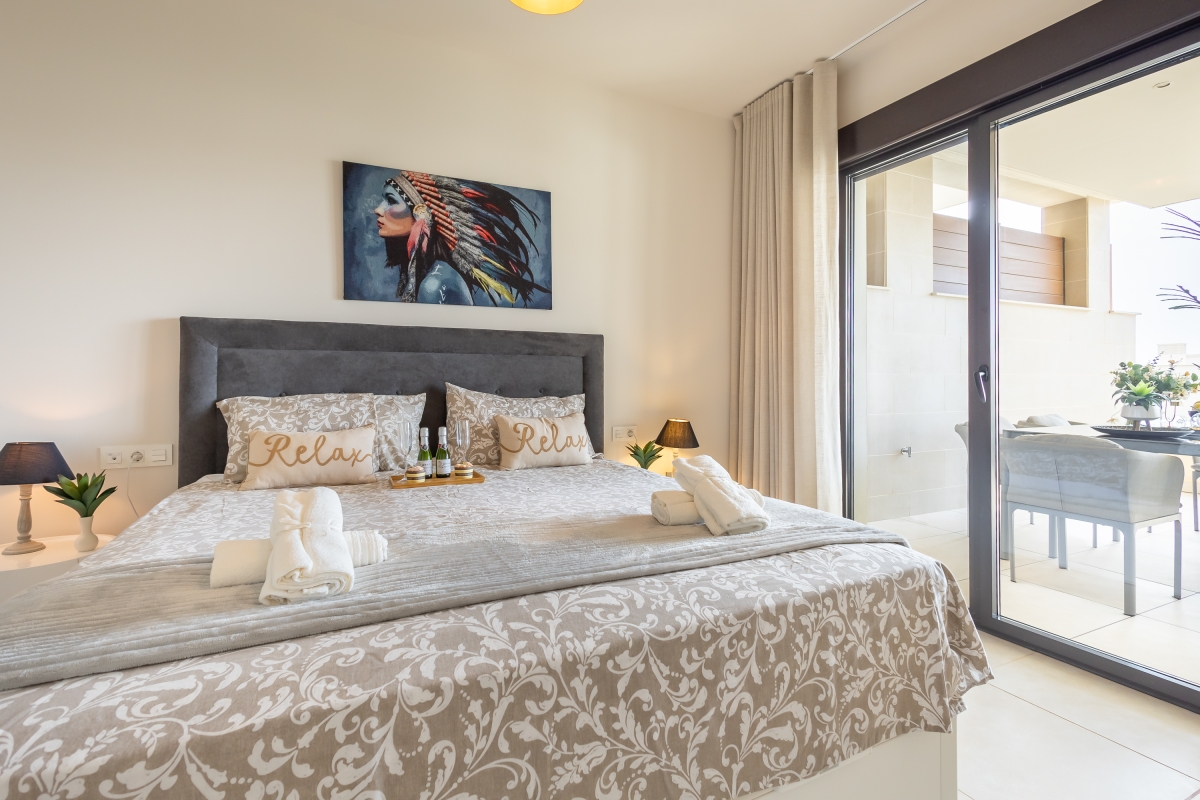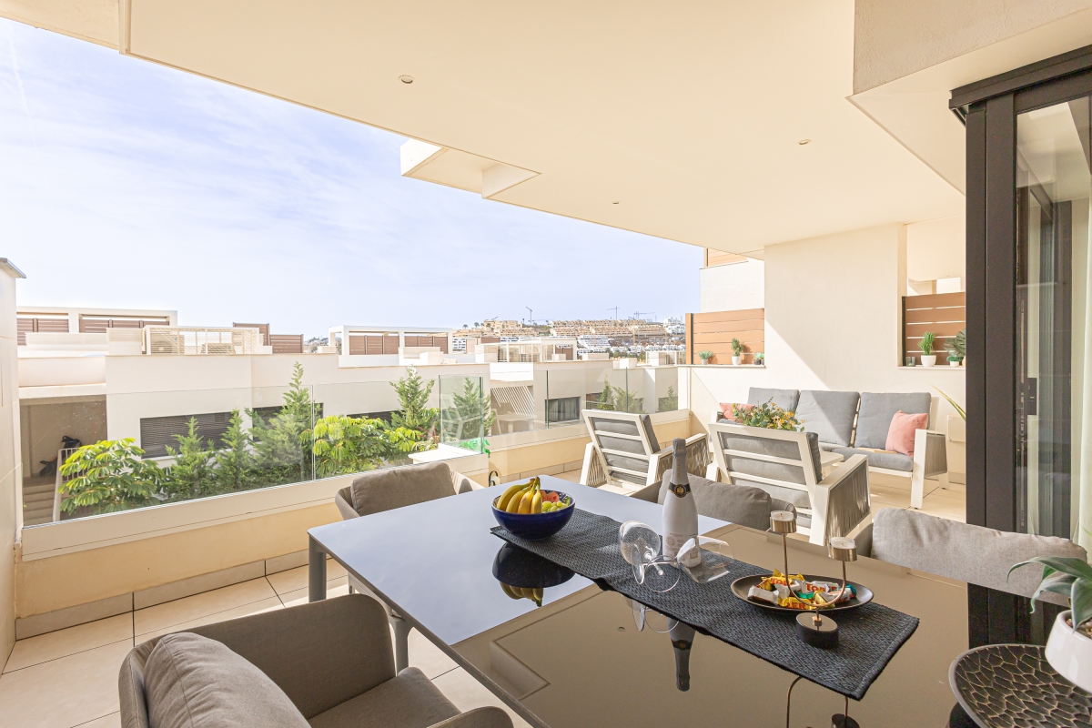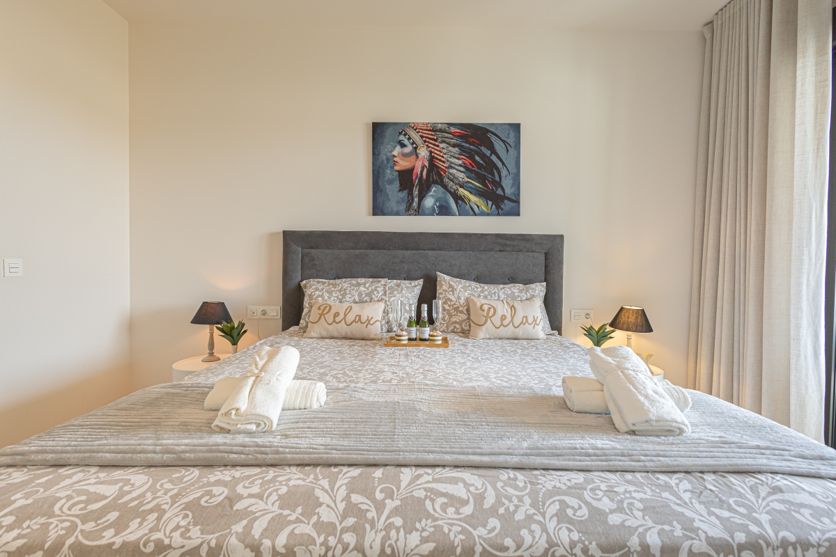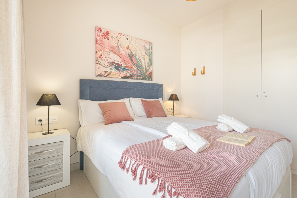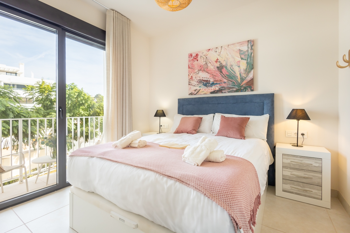 This is an exquisite 2-bedroom apartment with a shared pool in the tranquil town of La Cala de Mijas, perfect for up to 4 guests.