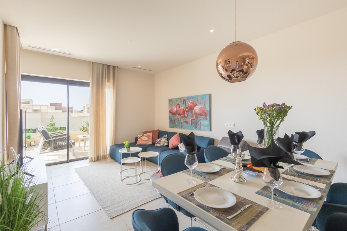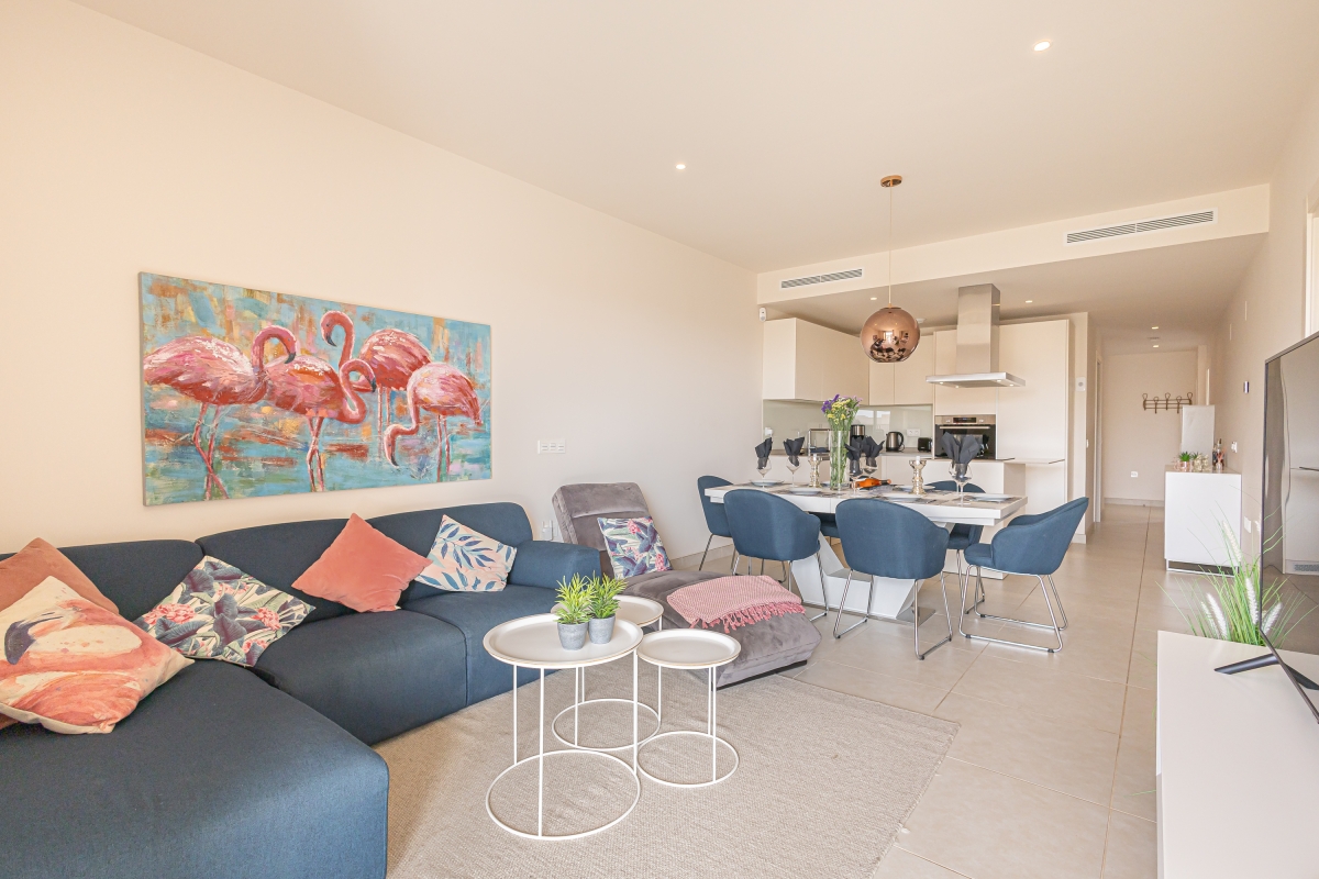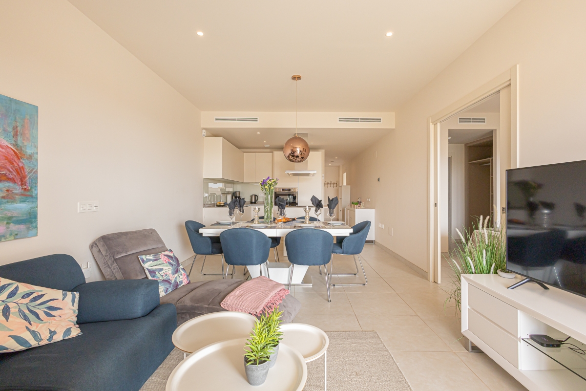 Located a 10-minute walk from the beach, this first-floor apartment features a spacious living room which opens up to a lovely terrace, providing a perfect spot for relaxation. Modern amenities include Free Wi-Fi, a Smart TV, and a comfortable laptop-friendly workspace. The open kitchen is fully equipped with an oven, induction hob, dishwasher, and more, making it ideal for preparing delicious meals.
