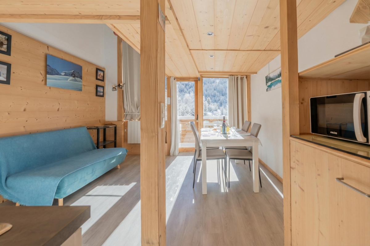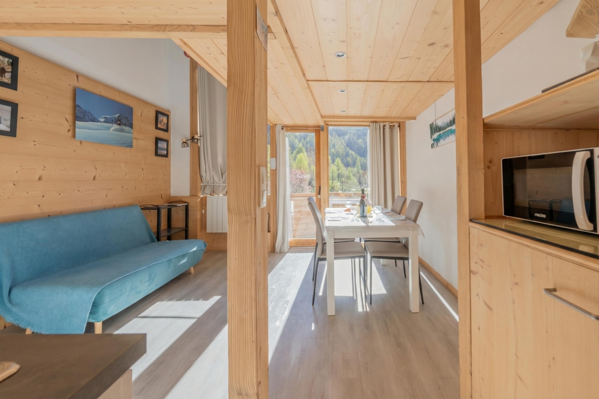 Résidence Grand Roc – Bruyères is in central Argentière, just a short walk from all the amenities; the cable car for Les Grands Montets skiing area (5-minute walk); ski slopes and shuttle buses. The nearby slopes are ideal for intermediate and experienced skiers. Some of the higher slopes offer skiing later in the season, sometimes right up to early May. For younger skiers, the Panda Club ski school is just a 6-minute walk.