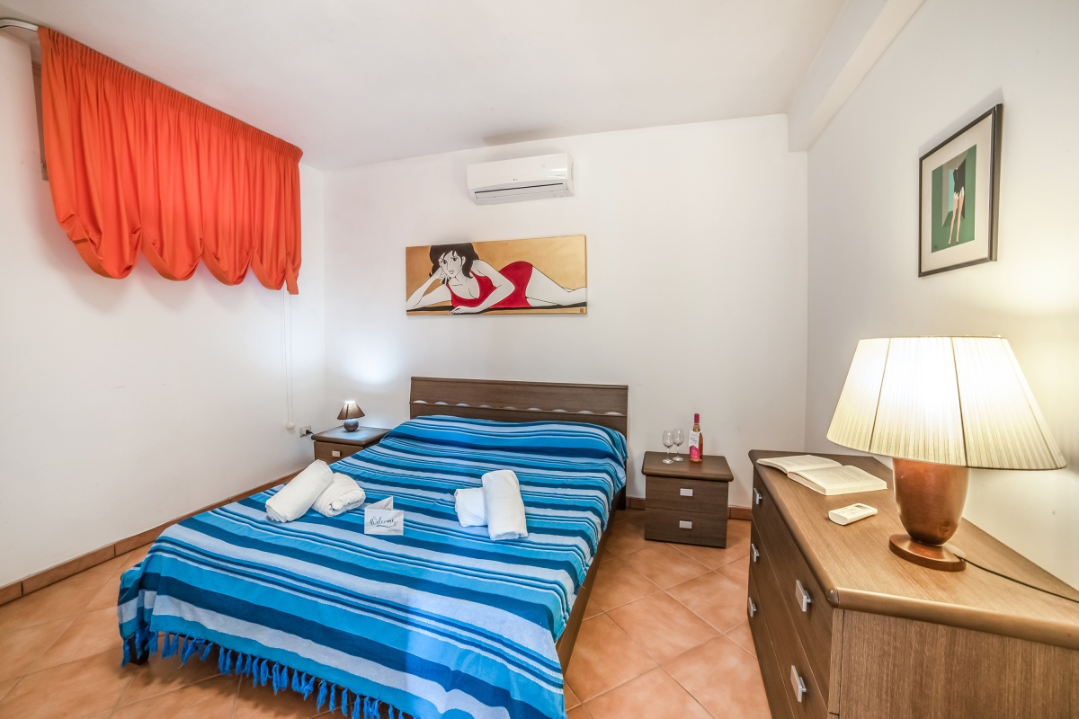 Bedroom: The master bedroom is furnished with a double bed and a chest of drawers.