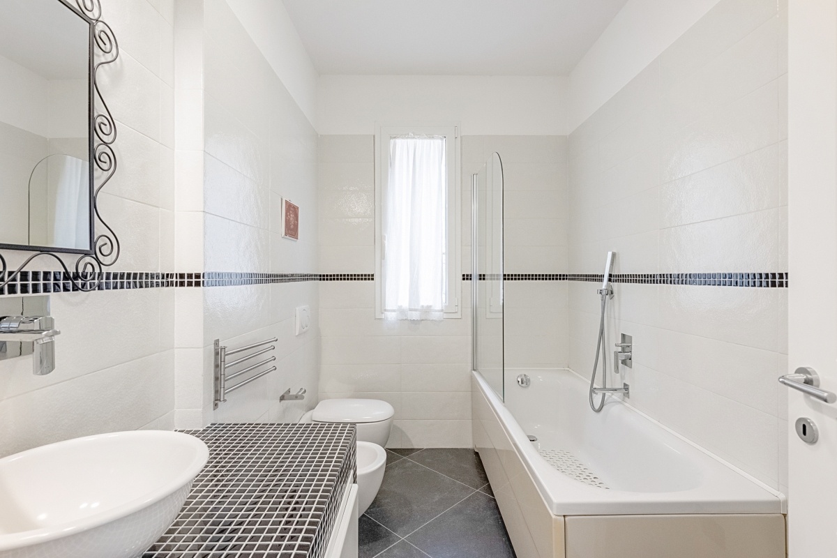 Bathroom 2: The 2nd bathroom is furnished with a bidet, a bath, a washbasin and a WC.