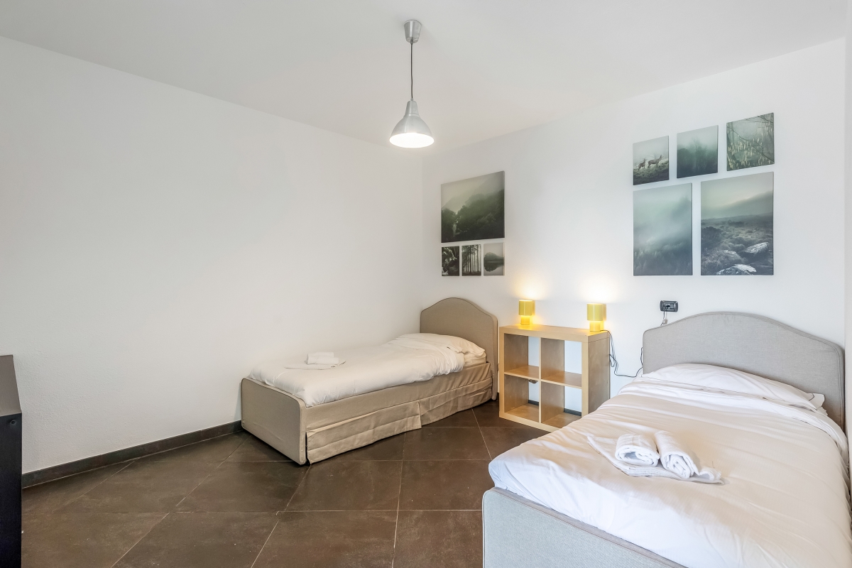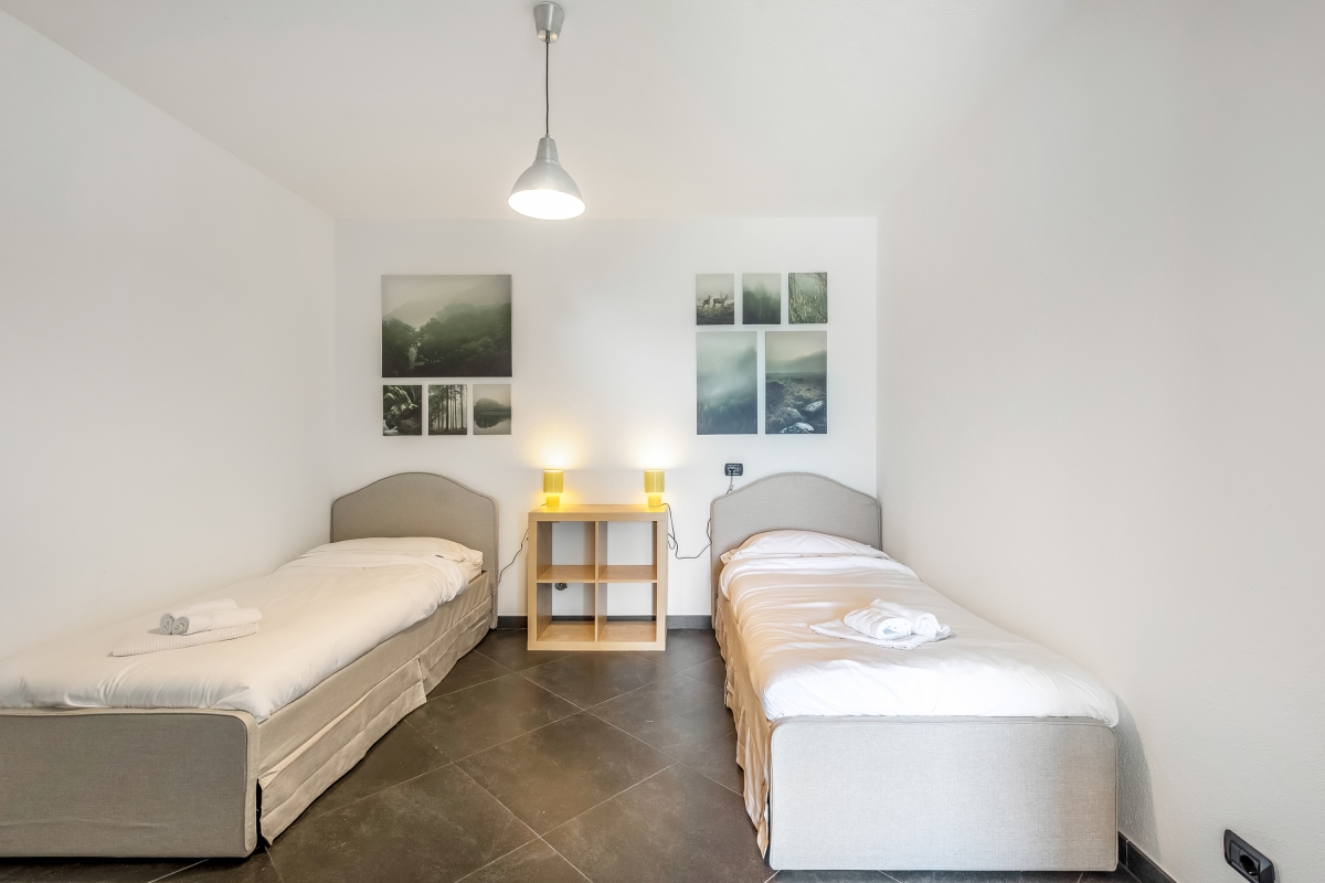 Bedroom 2: This bedroom features two single beds and a wardrobe.