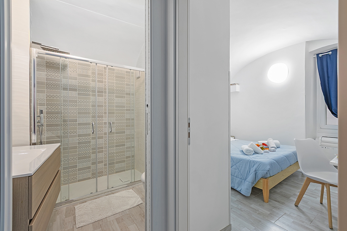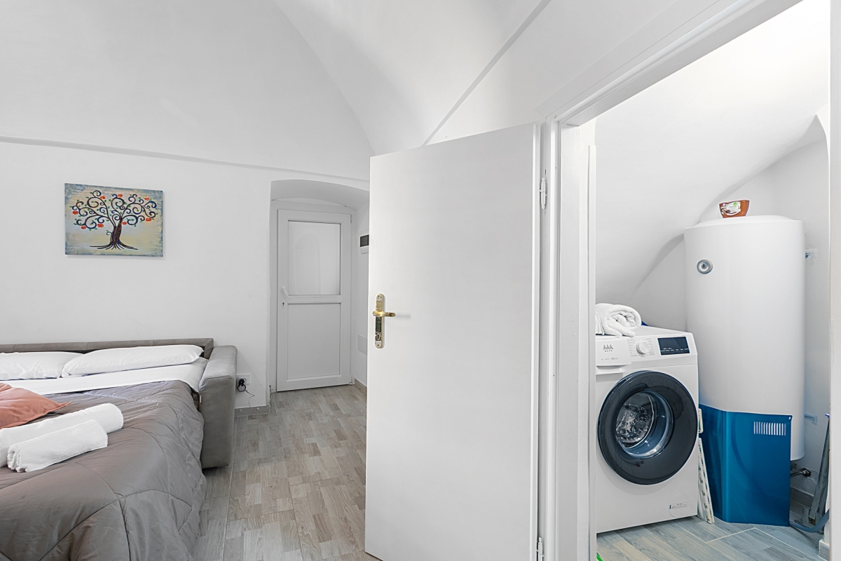 Please note that reaching the apartment requires a short uphill walk with some steps (approximately 300 m), followed by two flights of steep stairs leading to the entrance.