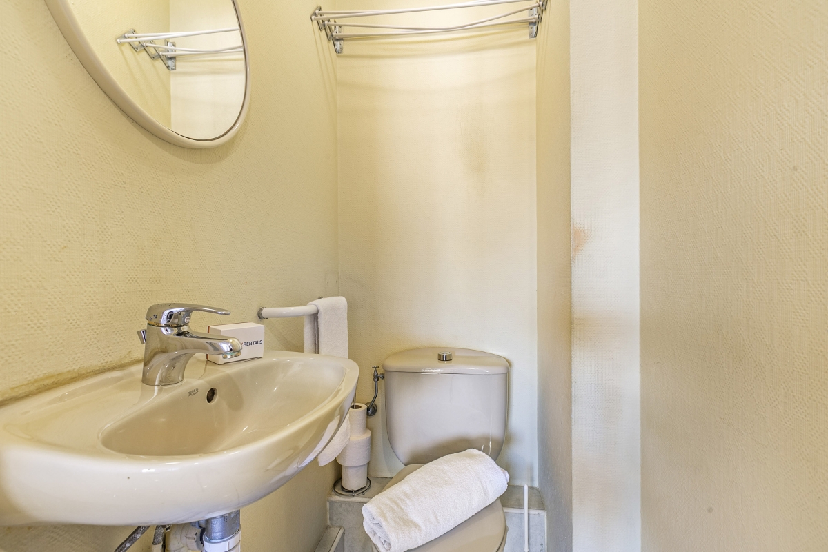 The apartment is filled with natural light and features a comfortable living area opening onto a large private terrace with a beautiful garden view, perfect for breakfast in the sun or evening relaxation. It includes a cozy bedroom, a fully equipped kitchen, and a bathroom with separate toilet.