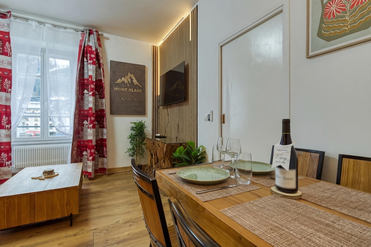 A chic alpine apartment in central Chamonix offering iconic views, boutique comfort, and unbeatable access to skiing, dining, and mountain life.