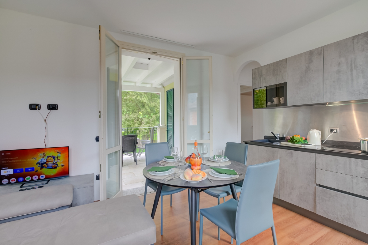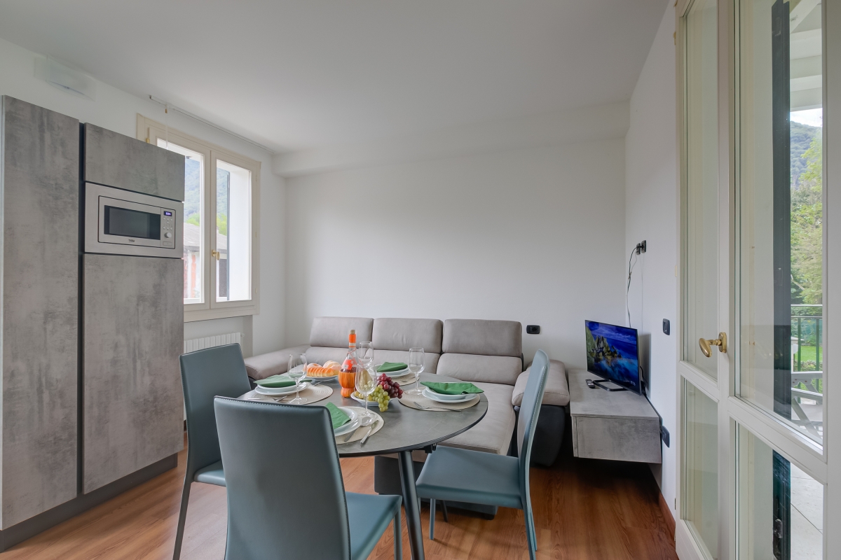 Located in Porlezza on Lake Lugano, the villa apartment is situated within the park of Porto Letizia. The family-friendly resort enjoys a lakeside public park with meandering footpaths and a communal beach with SUP and watersport hire, 2 children’s play areas and a main Palazzo building with on-site reception, a stylish café bar, contemporary Panama Italian restaurant and more. During the months of July and August there is also a kids’ entertainment program.