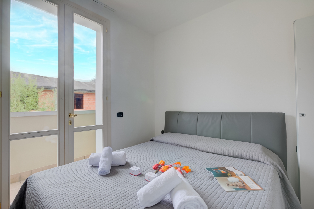 Inside, the WiFi-enabled apartment enjoys an inviting open plan living space with sofa, flat screen TV and a modern fitted kitchen diner for 4. French doors lead out onto a private, scenic balcony terrace which is furnished with an alfresco dining set for 4. A spacious lake view double bedroom with balcony access is accompanied by a smaller child-friendly room with bunk beds and balcony access. Completing the internal layout is a modern fitted shower room. The kitchen features Nespresso coffee machine, a Dishwasher, an Electric Kettle, a Microwave, a Freezer, a Fridge, and an Induction Hob.