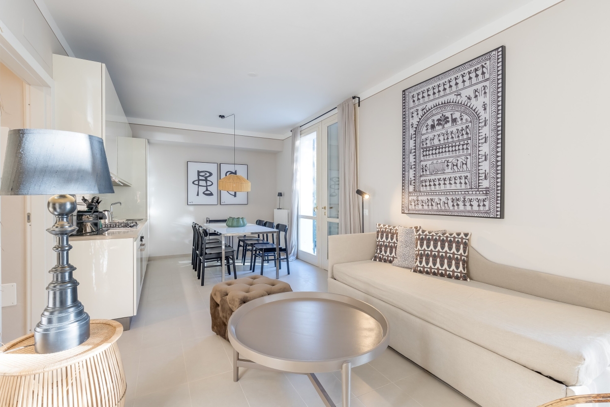 With its serene lake view setting overlooking the park of Porto Letizia, this balcony retreat offers a tranquil holiday base for couples and groups of 4.