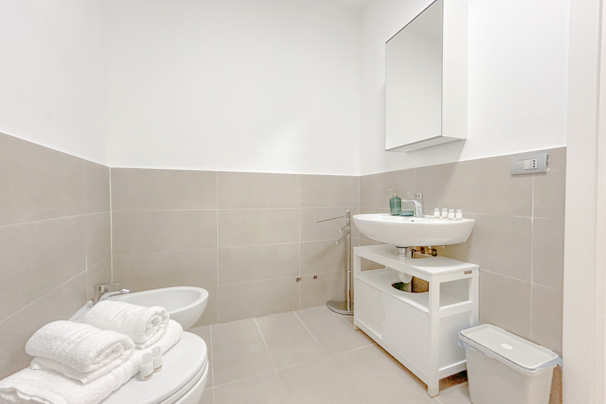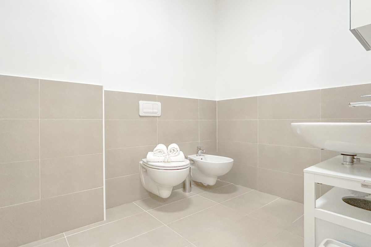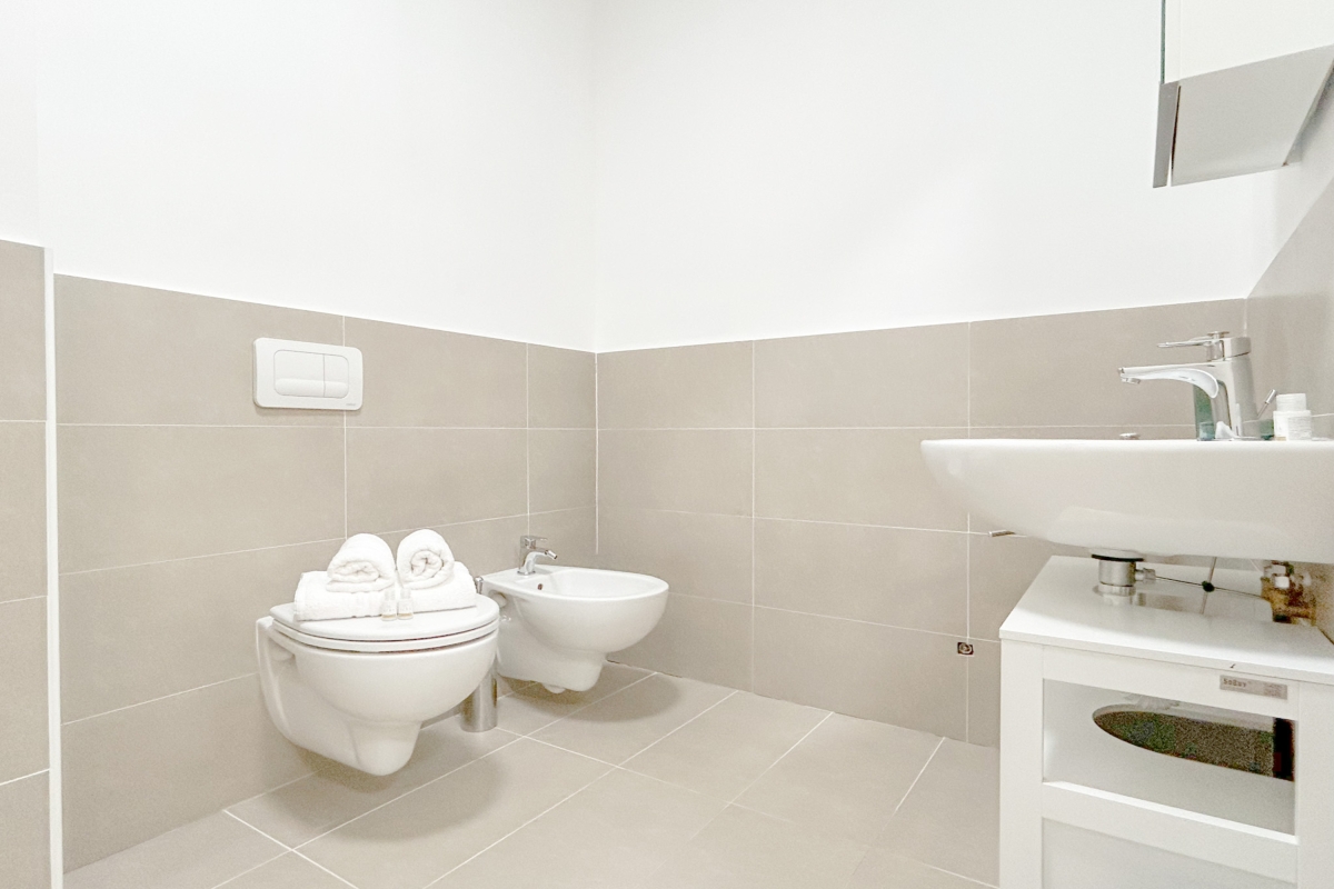 The modern bathroom includes a bidet, shower, and WC.