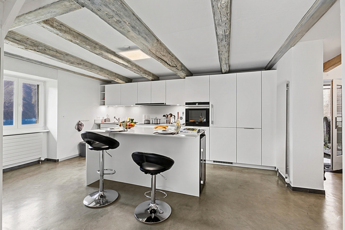 There are two large terraces with lake views, one on the upper floor and one on the ground floor.