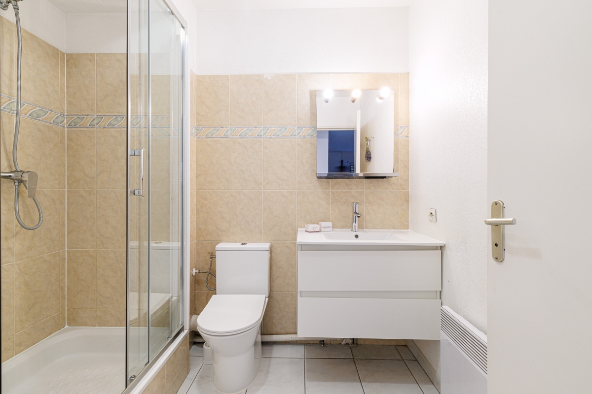 Bathroom: The bathroom is fitted with a shower, a bidet, a washbasin and a WC.