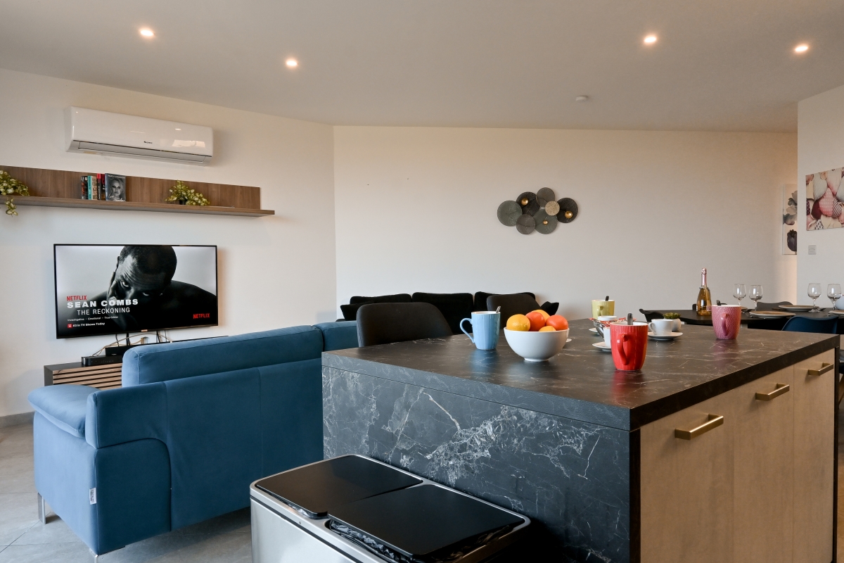 Relax and unwind at Hal Eghzien Residence, a stylish and high-quality sea view apartment located on the 2nd floor in the peaceful village of Xaghra on the island of Gozo. Designed to comfortably accommodate up to four guests, this modern retreat is ideal for couples, families, or friends seeking comfort and tranquility in a scenic setting.