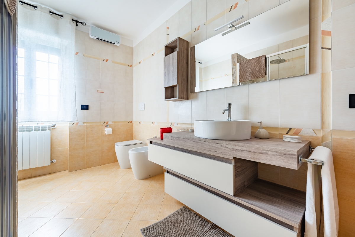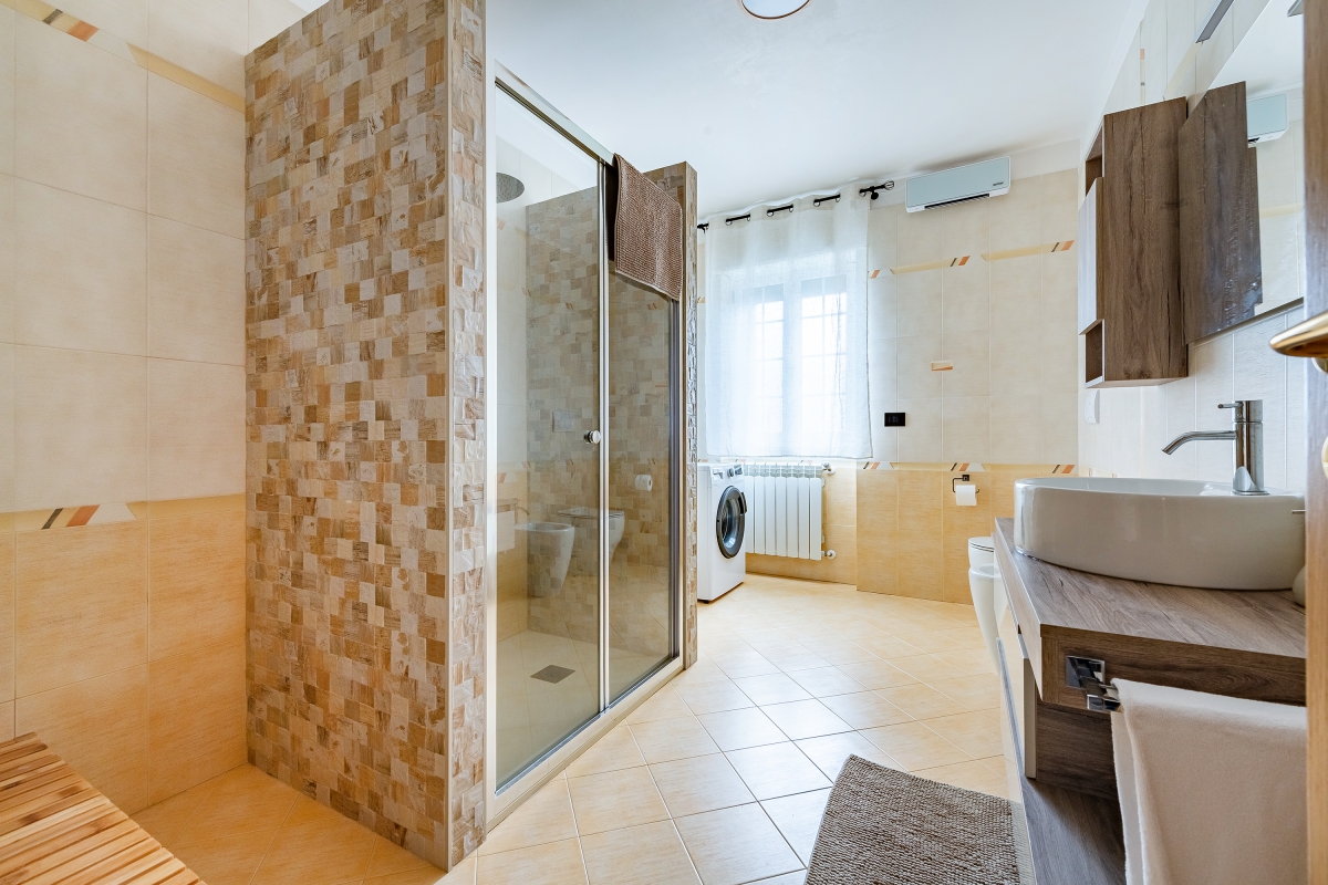 Bathroom 1: The 1st bathroom is fitted with a shower, a bidet, a vanity with a washbasin and a WC.