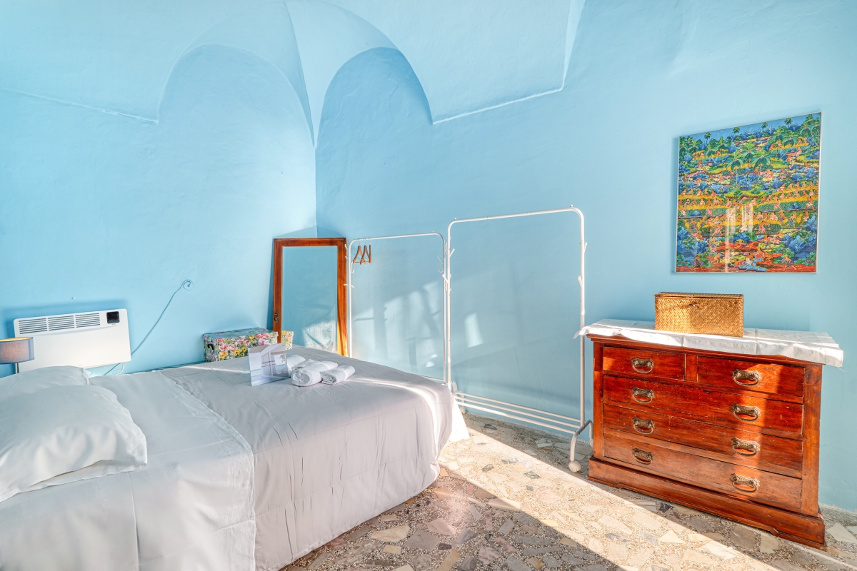 Bedroom 1: The bedroom is furnished with a double bed and a wardrobe. From this room, there is access to the balcony, where with your gaze, you can dive into the sea