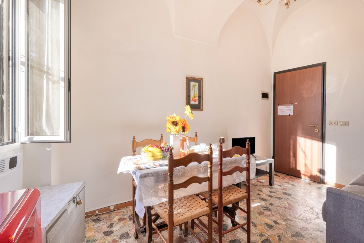 The property is only accessible on foot and requires a short walk up an external flight of steps. The apartment is located in a pedestrian area and cannot be reached by car.