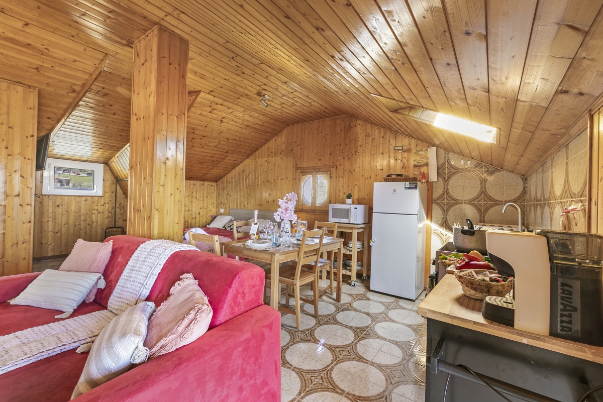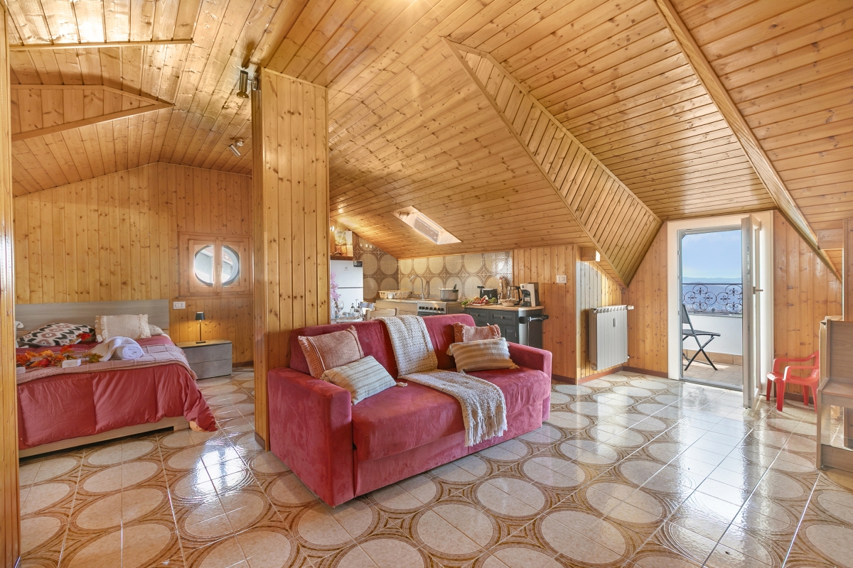 Perched on a hillside in the charming village of Nebbiuno, this inviting studio apartment offers a warm and tranquil escape for up to three guests. Located on the third floor, the open-plan layout is thoughtfully designed to combine comfort and functionality, making it ideal for couples or small families. The living space features a comfortable double bed along with a single sofa, creating a cozy setting to relax after a day of exploration.