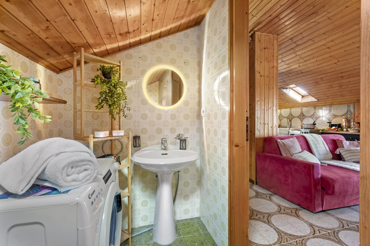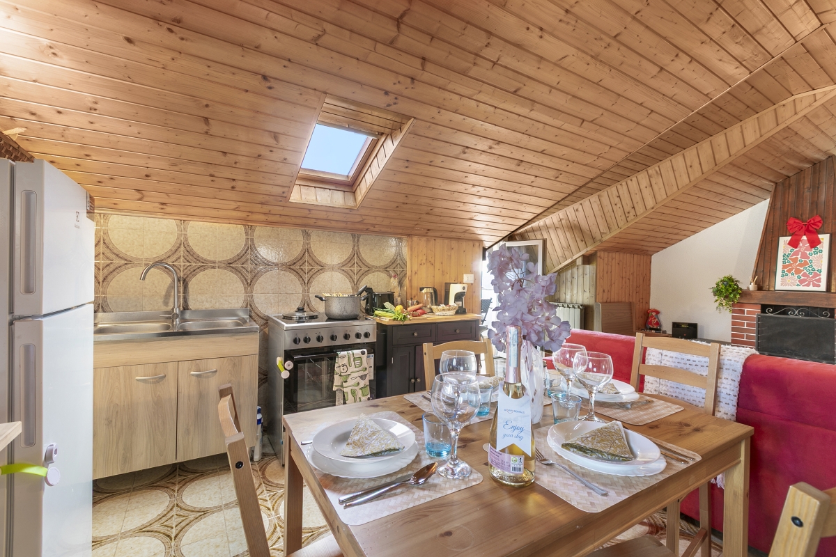 Blending modern convenience with rustic charm, the apartment showcases beautiful wooden interiors that add warmth and character throughout. The well-equipped kitchen-diner includes a coffee machine, electric kettle, microwave, oven, toaster, cooker hob, kitchenette, and fridge—perfect for preparing meals at your own pace. Entertainment is well covered with free Wi-Fi, a Smart TV, and a digital TV.