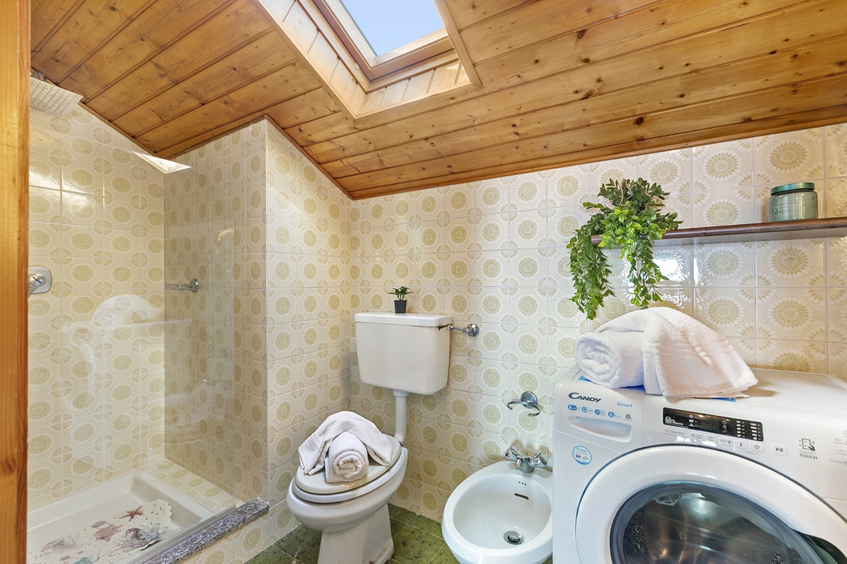 Bathroom 1: This bathroom has a shower, a washbasin, and a WC.