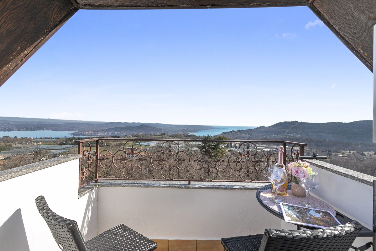 Enjoy a cozy hillside studio in Nebbiuno with lake views from the balcony, rustic wooden charm, and tranquil surroundings.