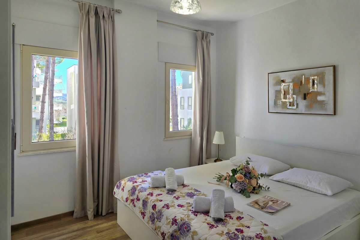 Travel is easy and stress-free, with Tirana International Airport about a 30-minute drive away and the Durres bus station reachable in roughly 35 minutes. Experience the beauty and tranquility of Lalzit Bay at Perla Resort, where modern comfort blends seamlessly with natural serenity—your ideal home away from home for relaxation or exploration along the Albanian coastline.