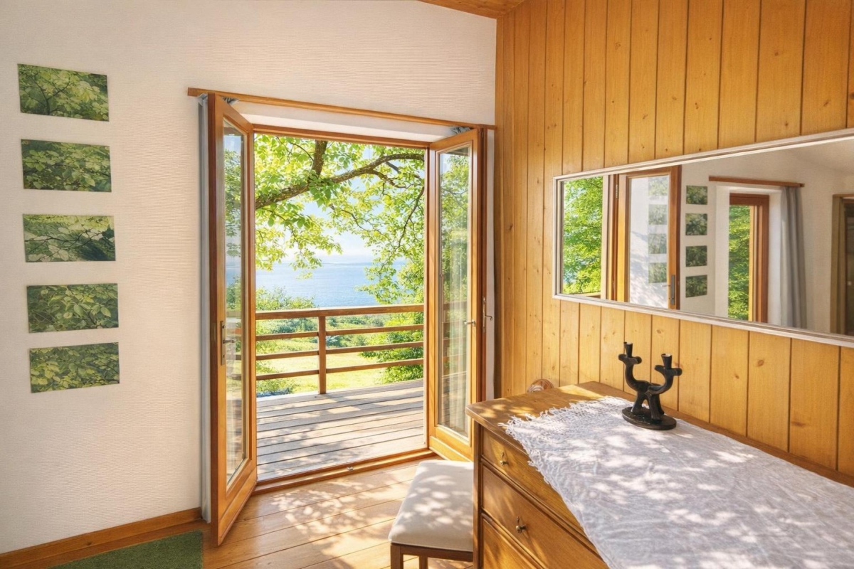 Upstairs, you will find the double bedroom with a balcony overlooking the terrace.