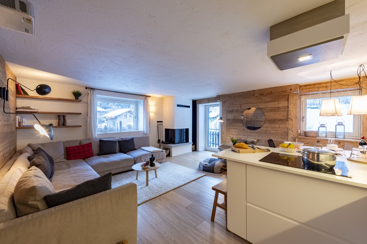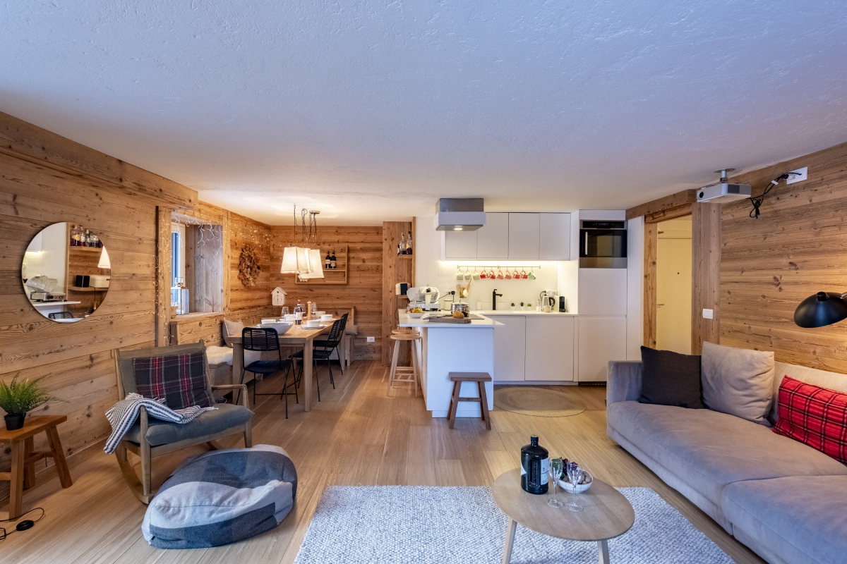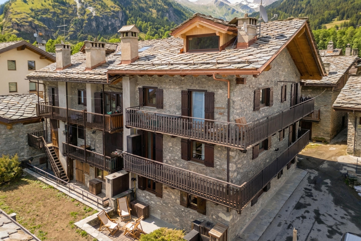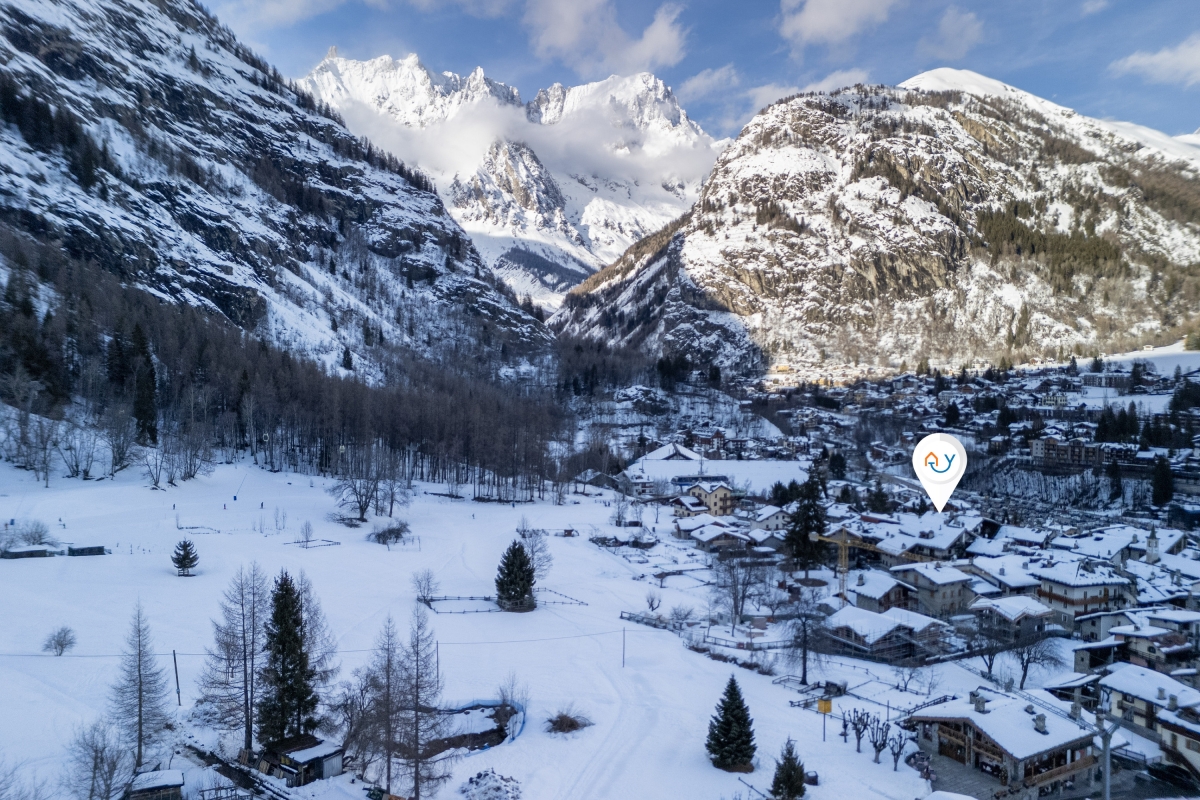 The apartment is nestled at the foot of Mont Blanc, in the hamlet of Dolonne, within Courmayeur, one of the most renowned alpine resorts in northwestern Italy. The ideal base for winter sports enthusiasts, Courmayeur offers a wide range of ski slopes suitable for all levels and is famous for its off-piste opportunities, including the Vallée Blanche.
