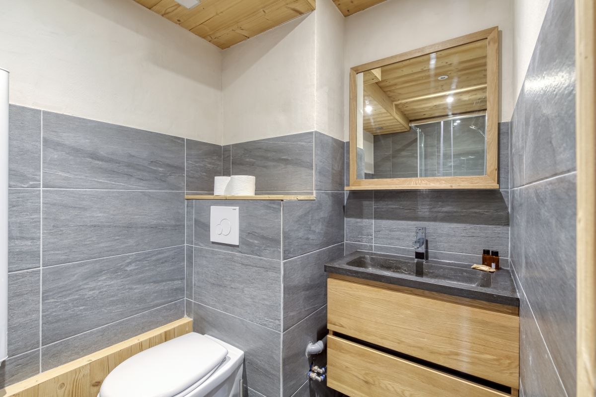 Bathroom 1: This bathroom features a shower, wash basin, and WC.