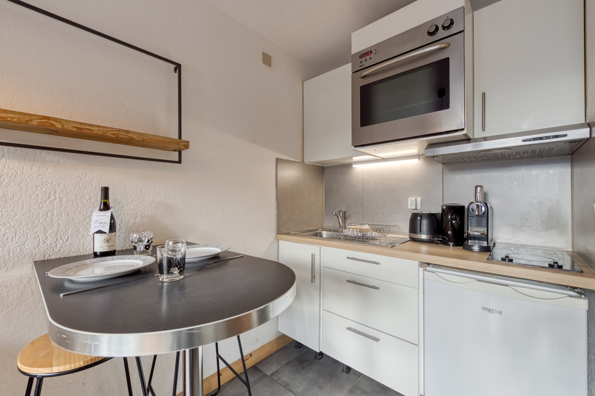 Inside, the apartment is thoughtfully arranged for a relaxing stay. The well-equipped kitchen includes a cooker hob, electric kettle, coffee machine, toaster, oven, and fridge with freezer—perfect for preparing cozy meals after a day outdoors. Combining tranquility, convenience, and alpine charm, Residence La Verte 11 offers a delightful base for an unforgettable mountain getaway in Argentière.