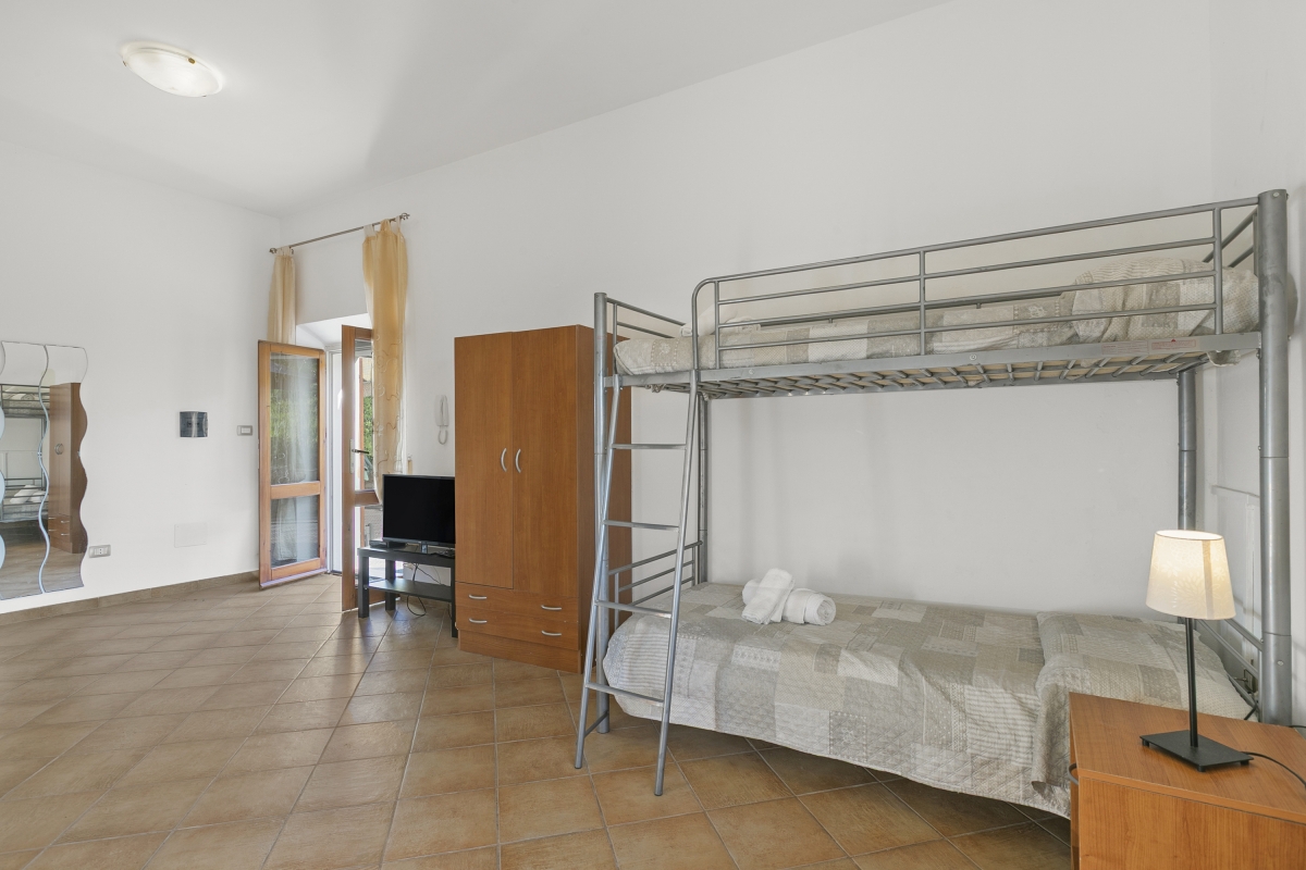 Living Room: There is a double bed and a bunk bed.