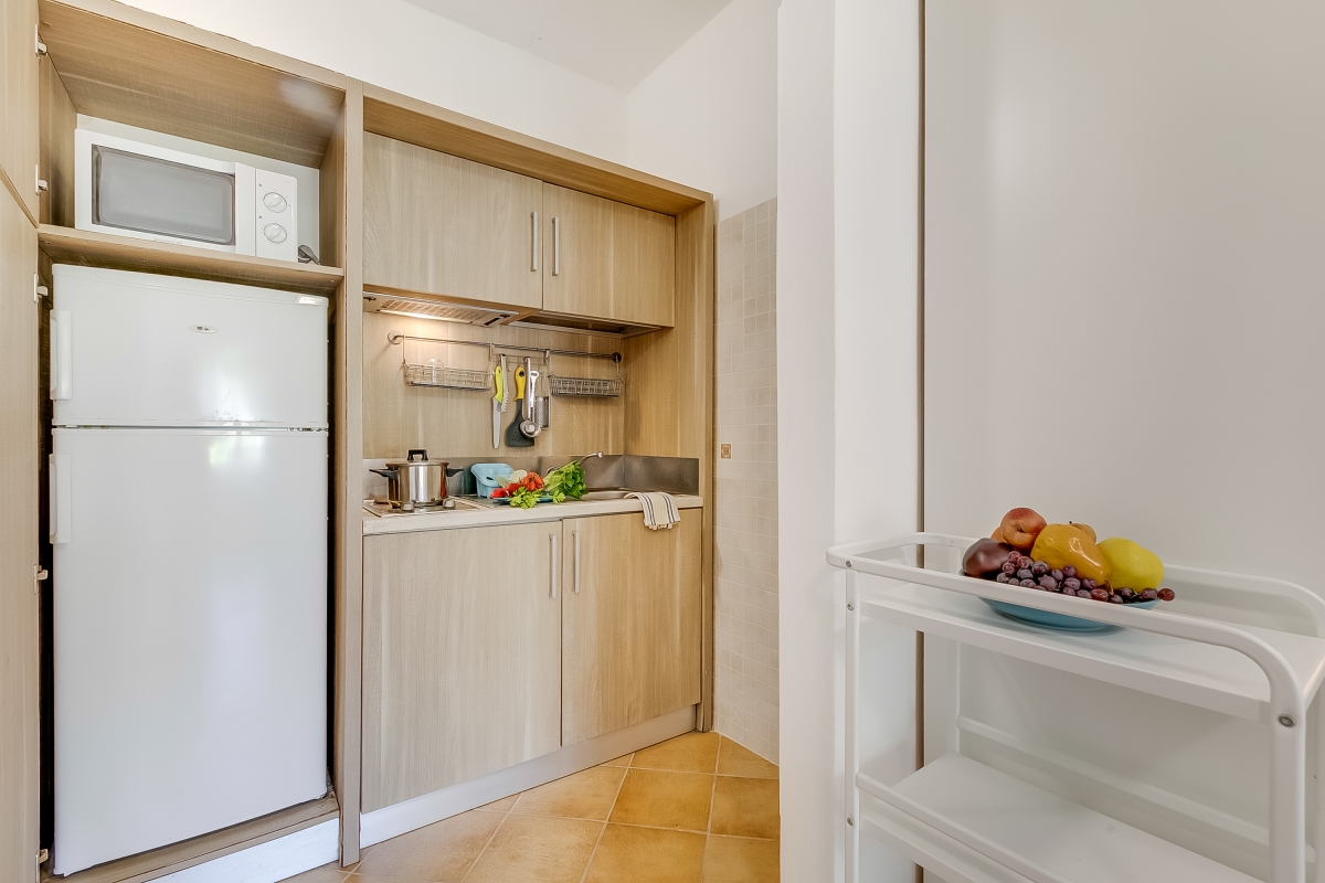The kitchen is well-equipped with all the essentials, including a cooker hob, coffee machine, electric kettle, microwave, and fridge—ideal for preparing simple, home-style meals at your convenience.