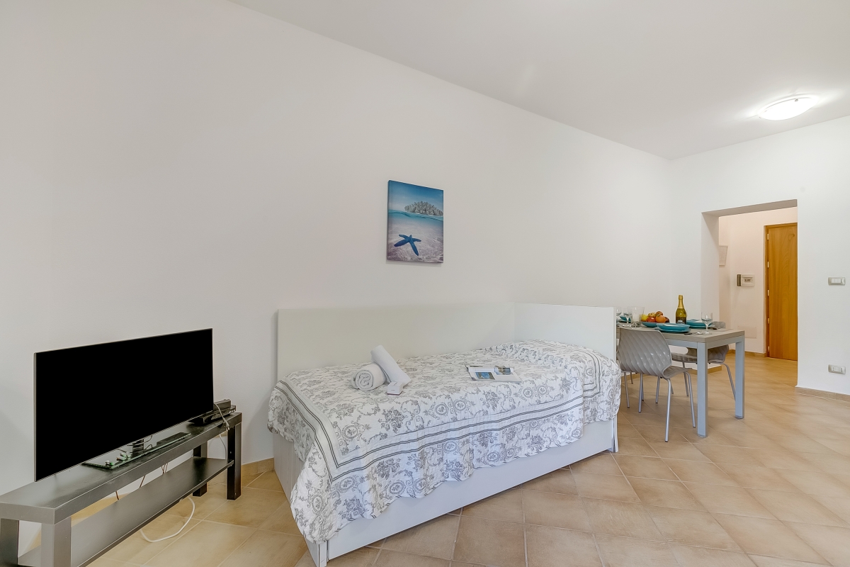 Step outside and immerse yourself in the calm surroundings of the shared garden, where lush greenery and fresh sea air create a soothing environment to unwind. Free public parking nearby adds to the convenience, especially for guests exploring Sardinia by car. This serene retreat offers the perfect balance of simplicity, comfort, and natural beauty.
