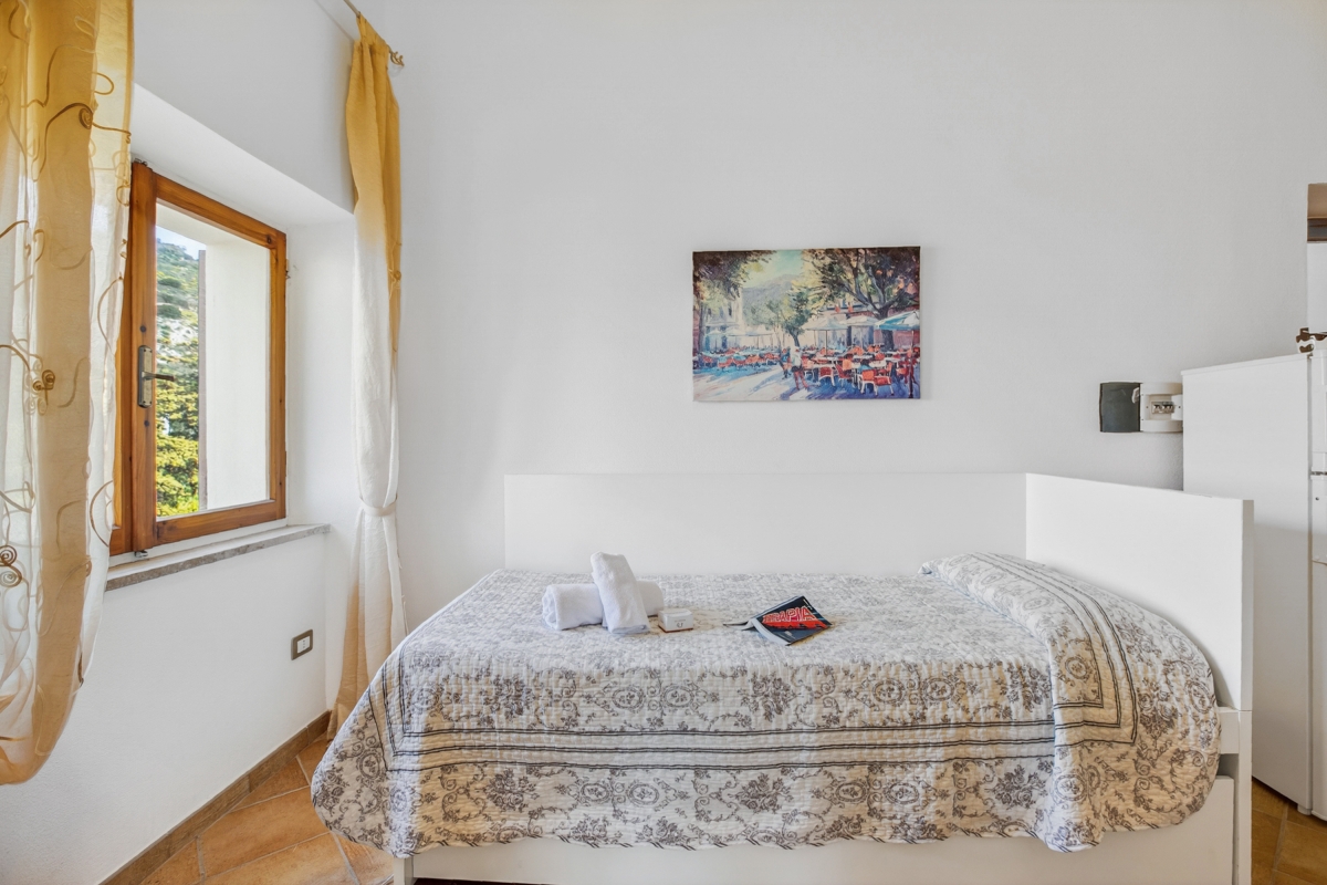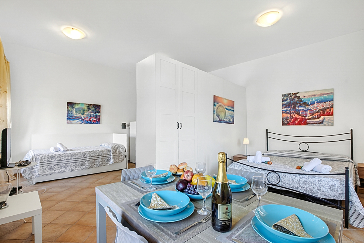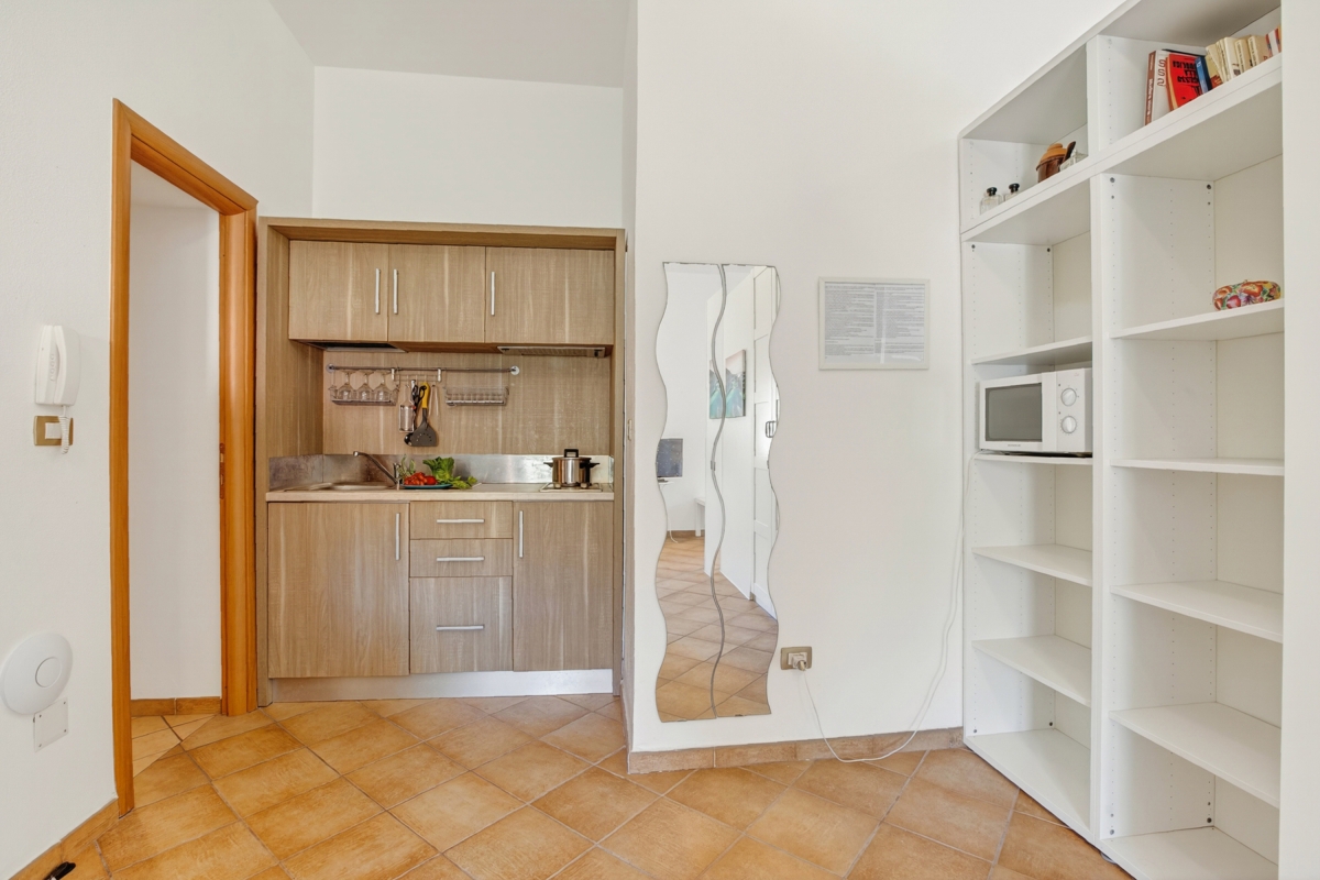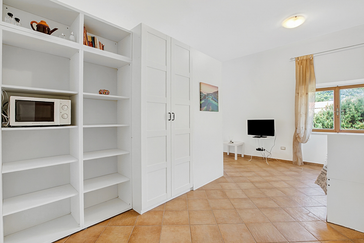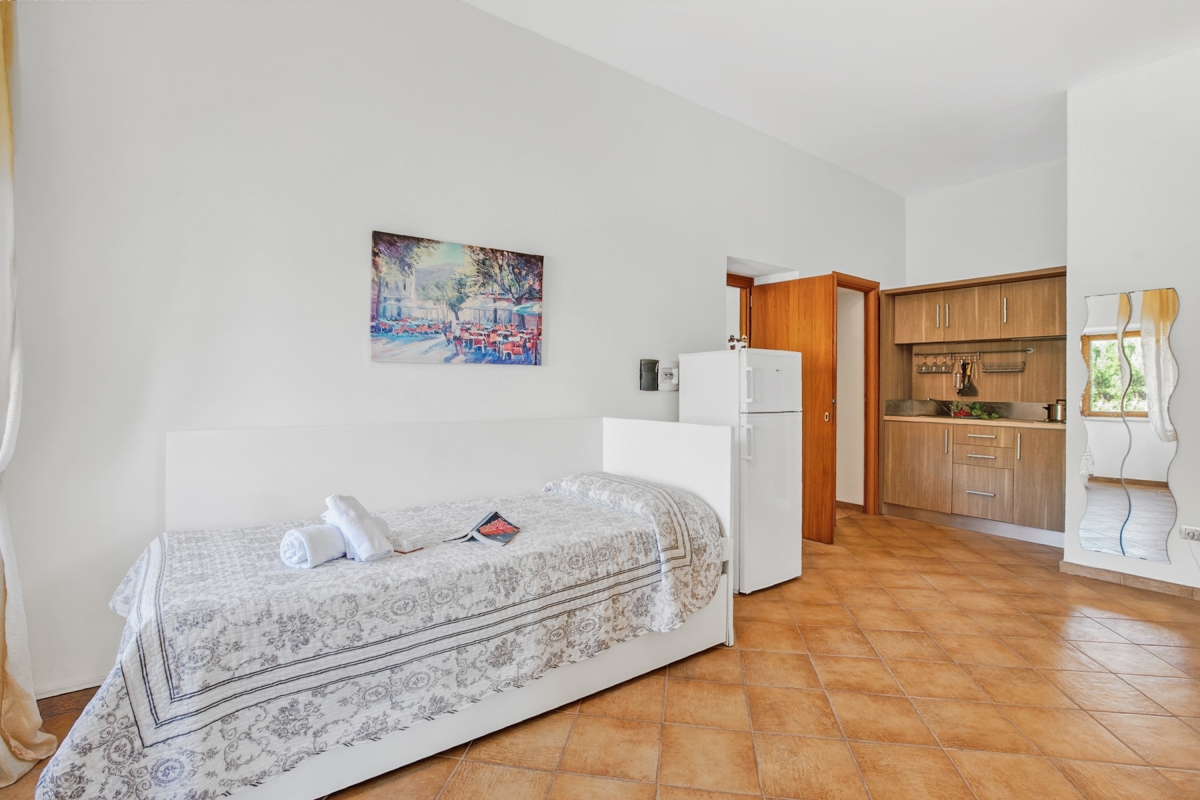 Offering a relaxed and uncrowded alternative to some of Sardinia’s busier resorts, this peaceful seaside village was once a small silver mining settlement. Surrounded by a shared garden, this practical studio apartment is located on the 1st floor of a 3-storey building. The main living space incorporates a small kitchen and is furnished with a double sofa bed and a flat screen TV. The kitchen is equipped with a Moka coffee machine, a cooker hob and a fridge.