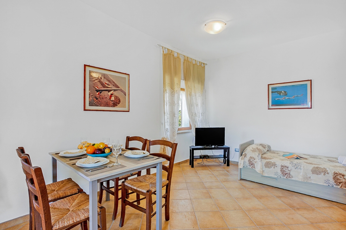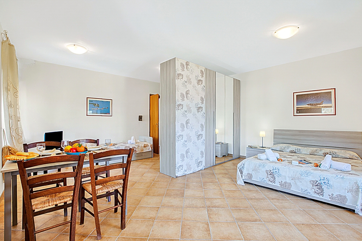 Welcome to Residence Argentiera VM 4, a serene studio apartment set in the unique landscape of Miniera dell’Argentiera, one of Sardinia’s most atmospheric and peaceful coastal areas. Located on the second floor of a quiet residence surrounded by greenery, this thoughtfully arranged studio comfortably accommodates up to four guests, making it ideal for couples or small families seeking rest and simplicity in nature.