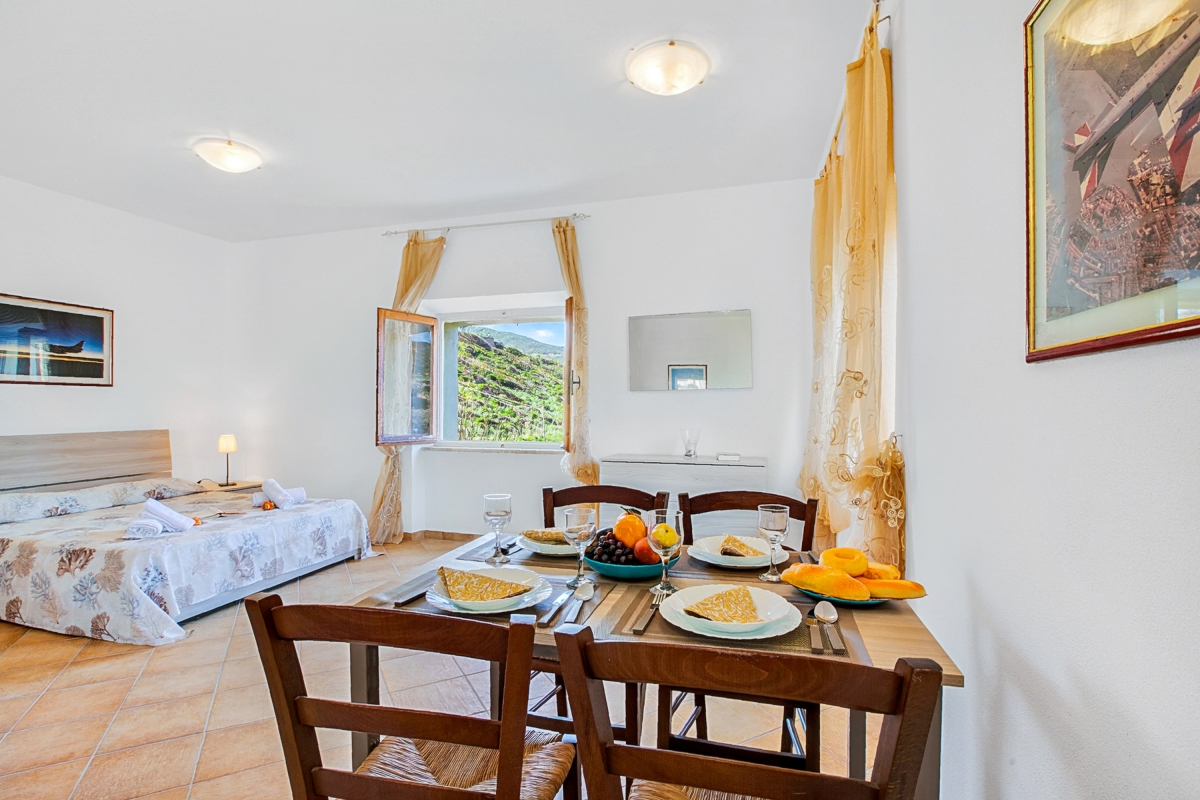 Residence Argentiera VM 4 is a peaceful studio apartment nestled in the quiet surroundings of Miniera dell’Argentiera, offering a relaxing escape immersed in Sardinia’s natural beauty. Located on the second floor of a tranquil residence, the apartment comfortably accommodates up to four guests, making it suitable for couples or small families seeking a calm getaway.
