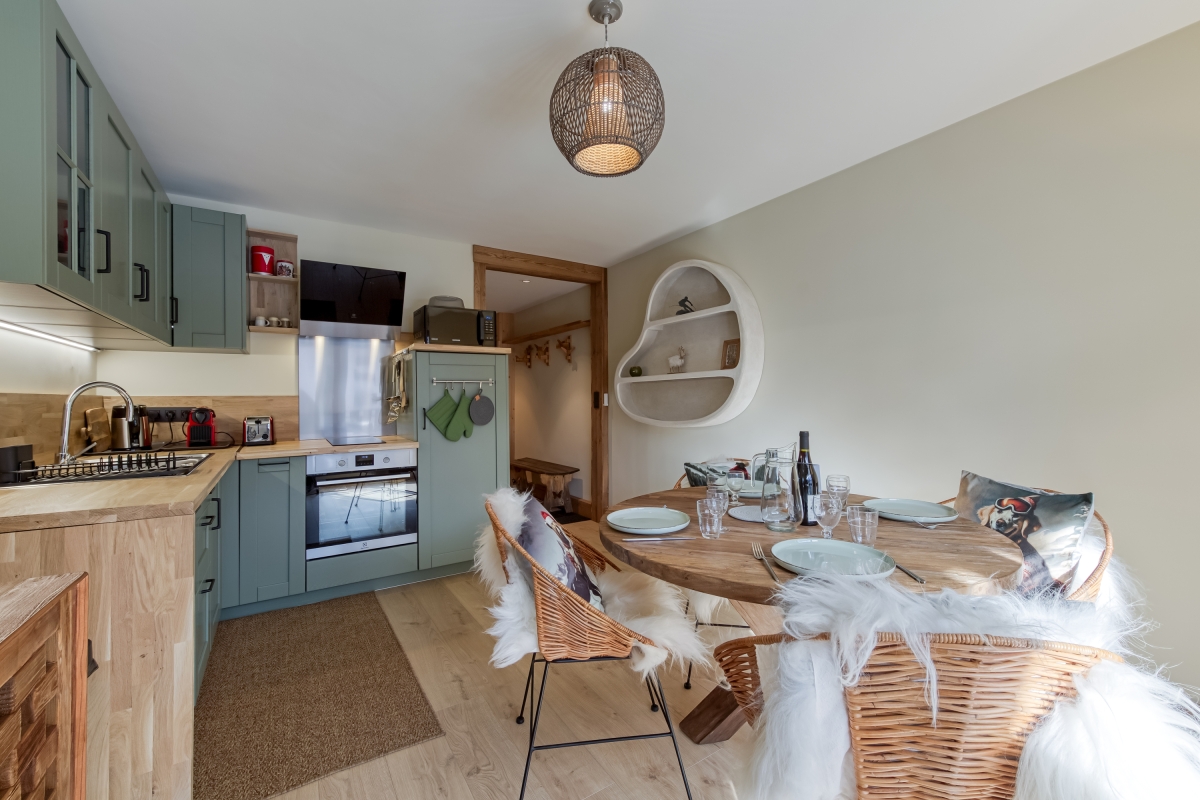 The fully equipped kitchen makes self-catering effortless, featuring both induction and cooker hobs, oven, microwave, toaster, dishwasher, coffee machine, electric kettle, and a fridge with freezer. After a day on the slopes or mountain trails, guests will appreciate the convenient ski locker located at the main entrance, along with nearby access to the ski shuttle bus. Combining modern comfort, scenic views, and practical amenities, Le Refuge Des Lacs offers an ideal base for an unforgettable Chamonix stay.