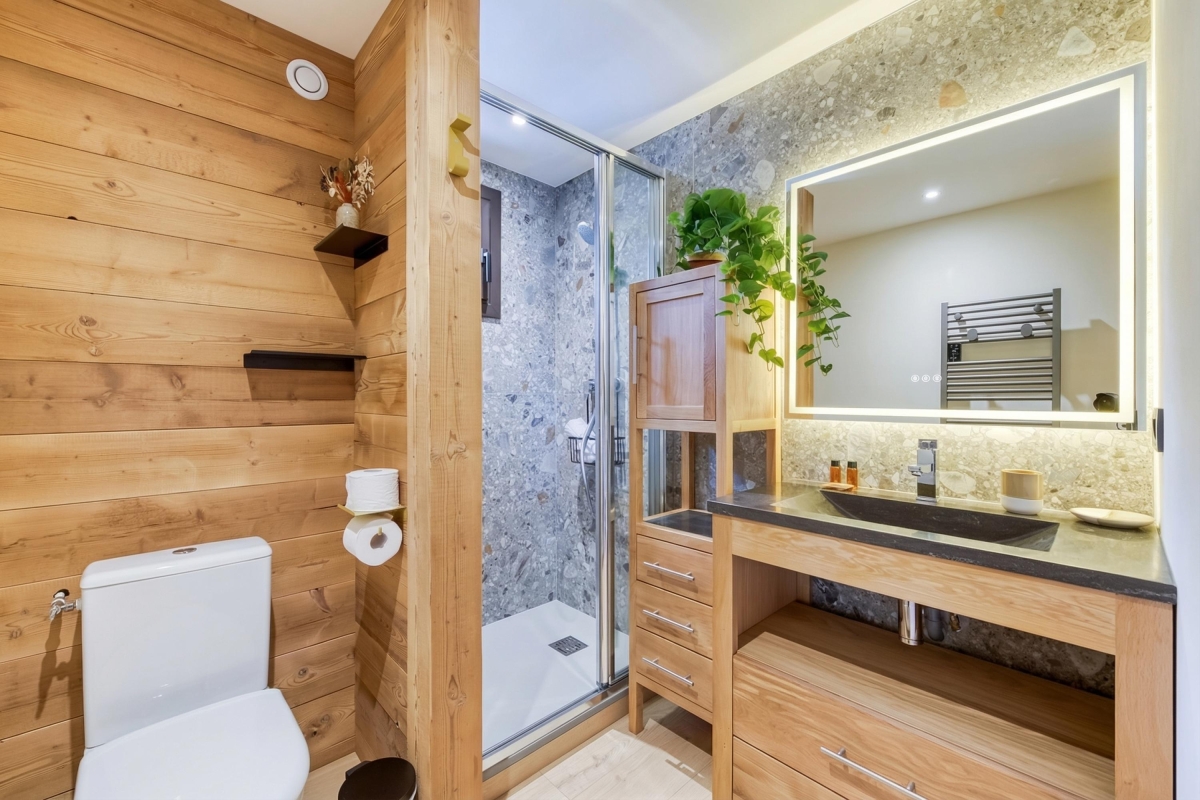 Transportation is exceptionally convenient. The bus stop “Les Gaillands” is located right at the foot of the residence, offering quick and easy access to ski areas, shops, and attractions throughout the valley. The “Les Pèlerins” train station is only about an eight-minute walk away, providing seamless connections along the Mont Blanc line. Geneva Airport can be reached in approximately one and a half hours by car, ensuring smooth travel for international guests.