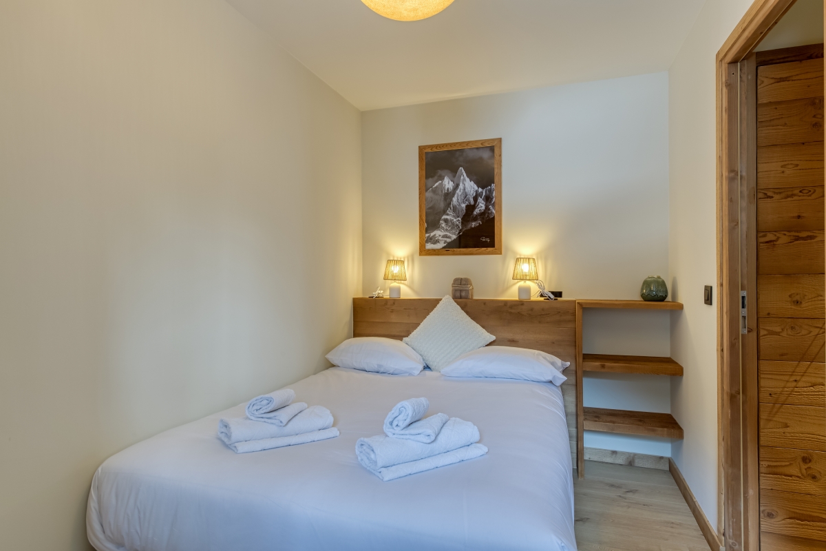 Le Refuge Des Lacs Mont-Blanc View is a stylish and welcoming alpine retreat, perfectly designed for a peaceful escape in the heart of Chamonix. Located on the first floor and accommodating up to four guests across two comfortable bedrooms, this modern apartment blends contemporary design with the timeless charm of its mountain surroundings.