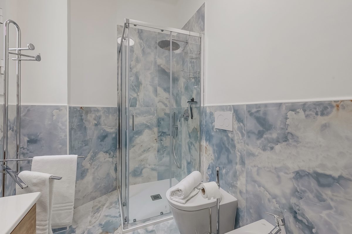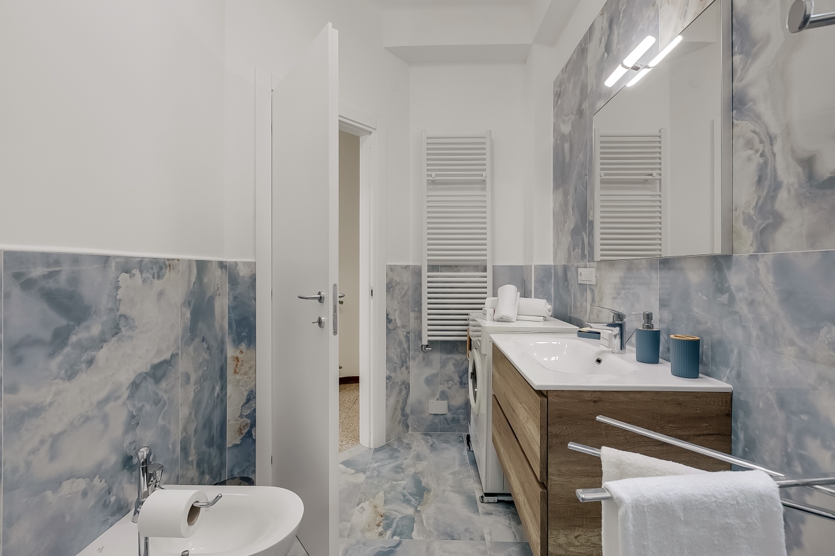 Bathroom: equipped with sink, toilet, bidet, shower, and washing machine.
