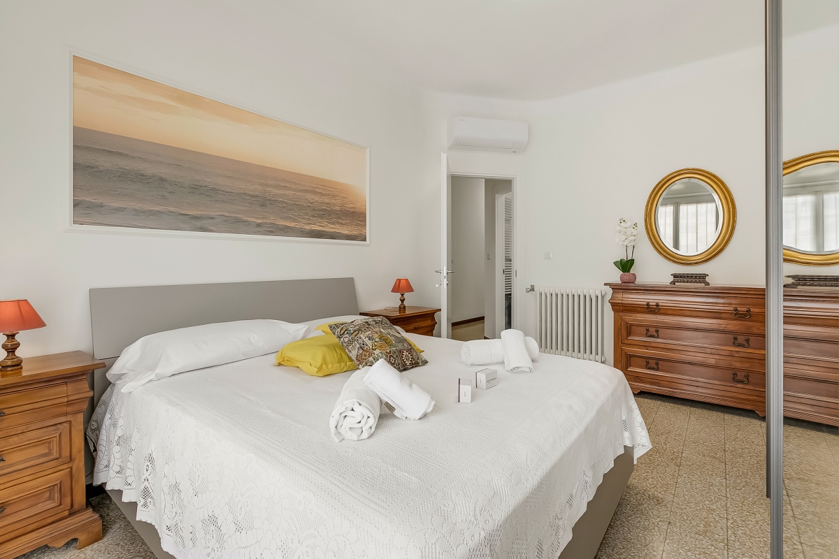 Bedroom: double bed with a spacious wardrobe and access to a private balcony.