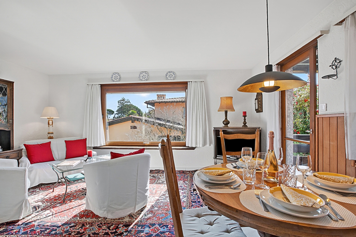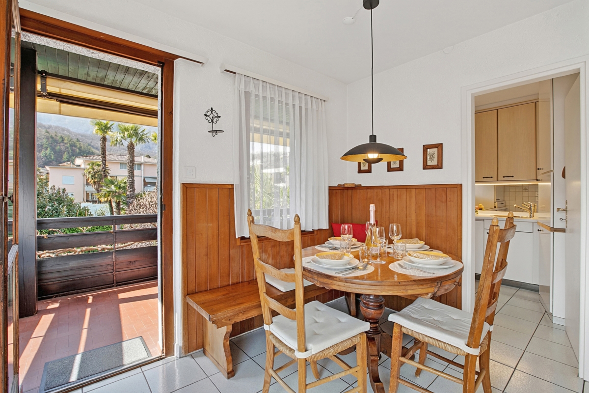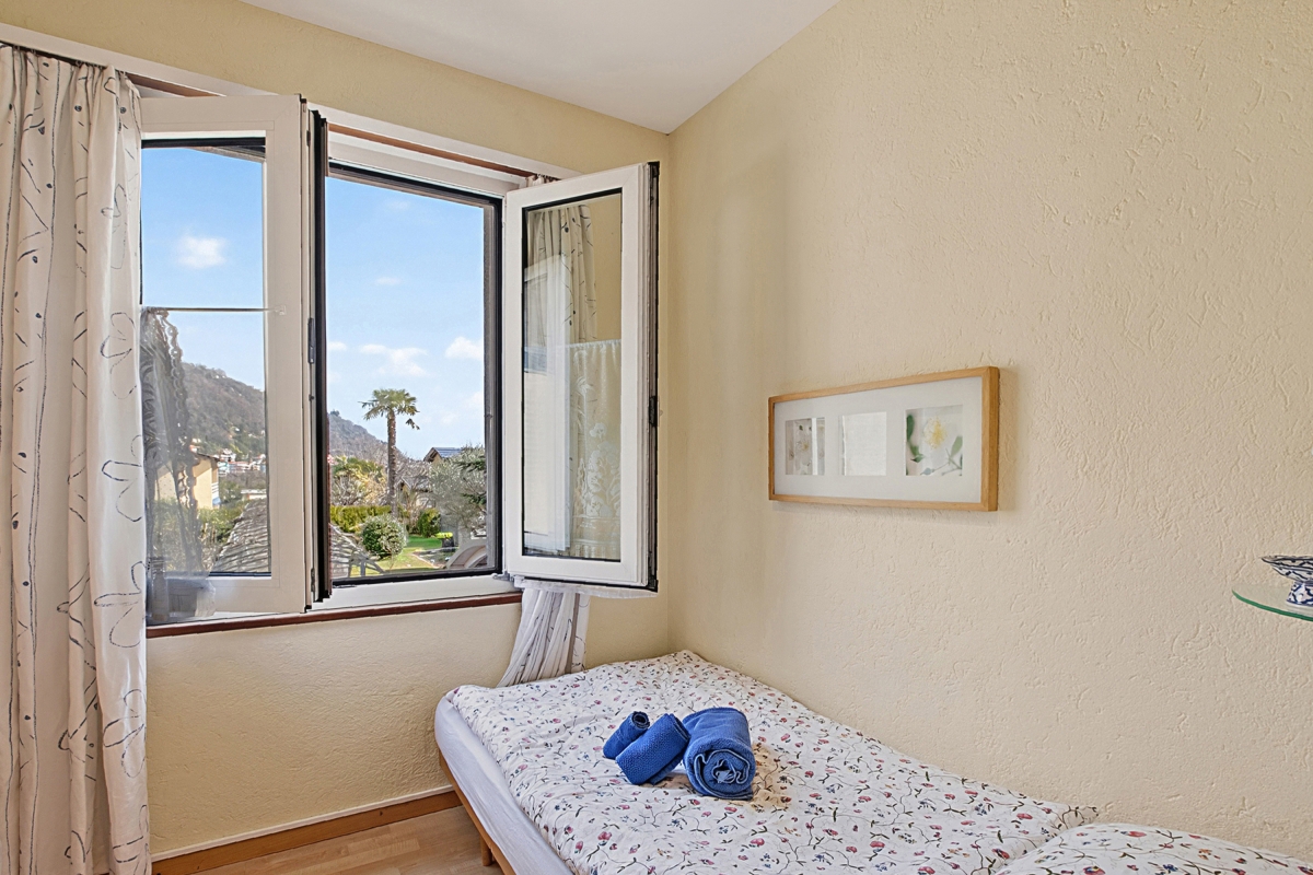 Casa Viola Panorama is located on the upper floor of a semi-detached house in a strategic location close to many amenities, allowing our guests to enjoy a convenient holiday in the heart of Losone. There is a supermarket 250 metres away, the road is quiet and the cycle path to Locarno or Valle Maggia passes right by the property. The beautiful Meriggio park is a 15-minute walk away, where parents and children can enjoy a refreshing swim in the Maggia River.