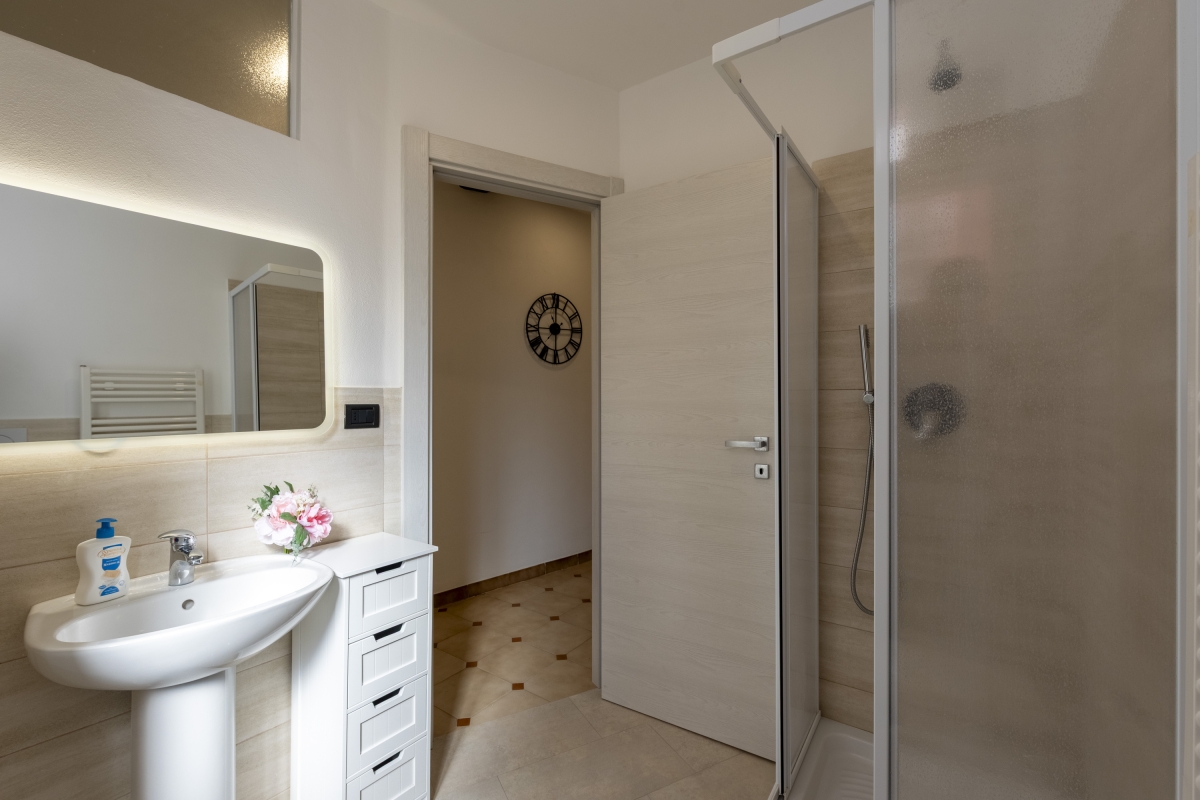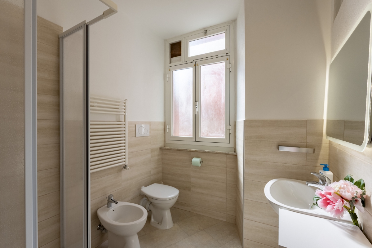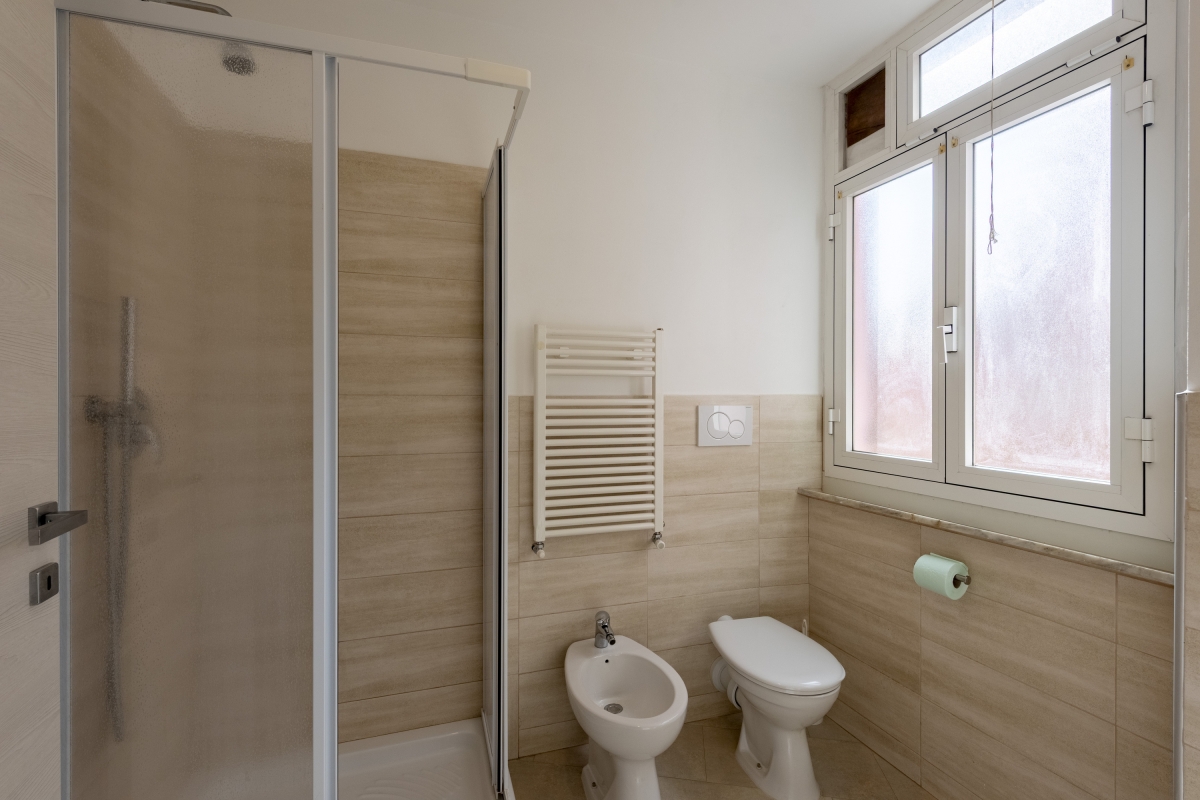 Bathroom: The bathroom is fitted with a shower, a bidet, and a WC.