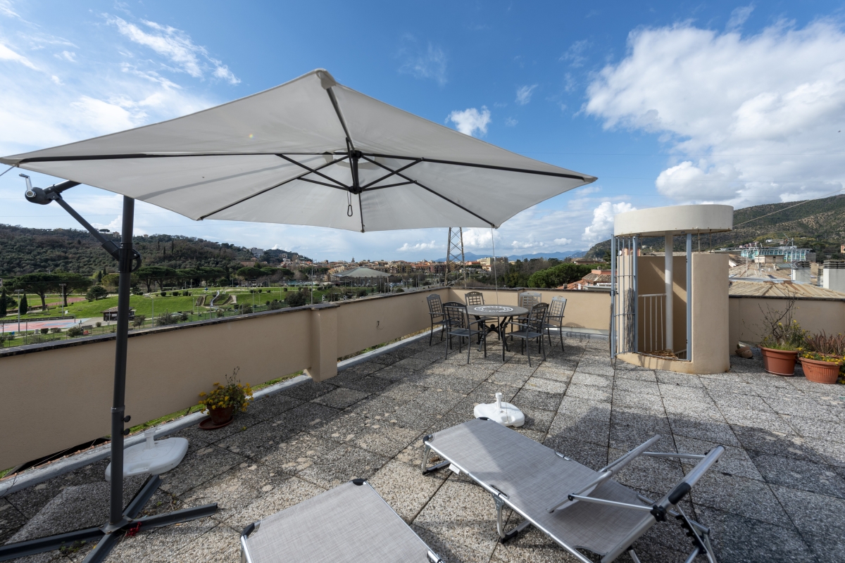 Located on the 4th floor (with a lift) of a modern 6-storey building, this air-conditioned property enjoys incredible views and both a rooftop terrace that's ideal for soaking up the Italian sun and a private balcony where guests can enjoy morning coffees and evening aperitifs.